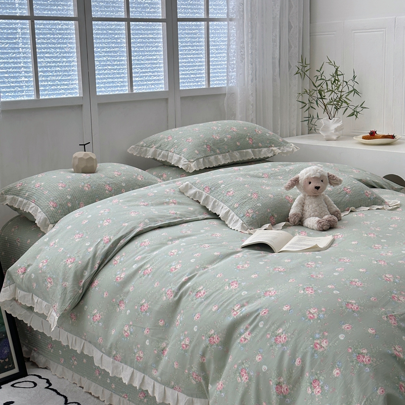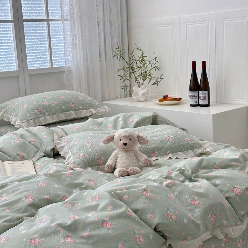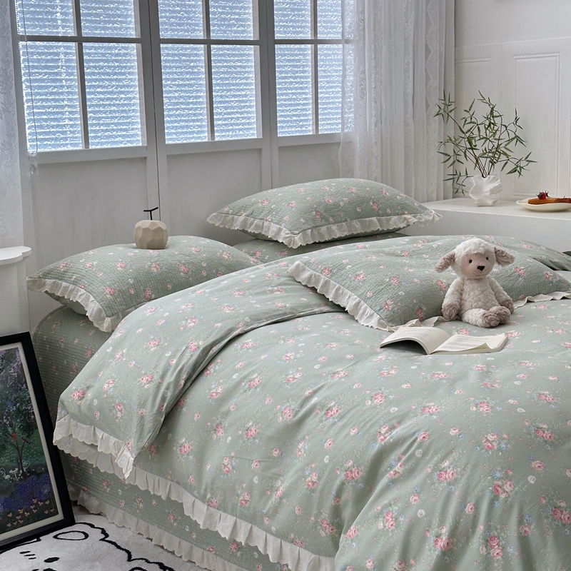 佰织鑫2025新款纯棉砂洗全棉床盖款四件套-花蔓系列 春至