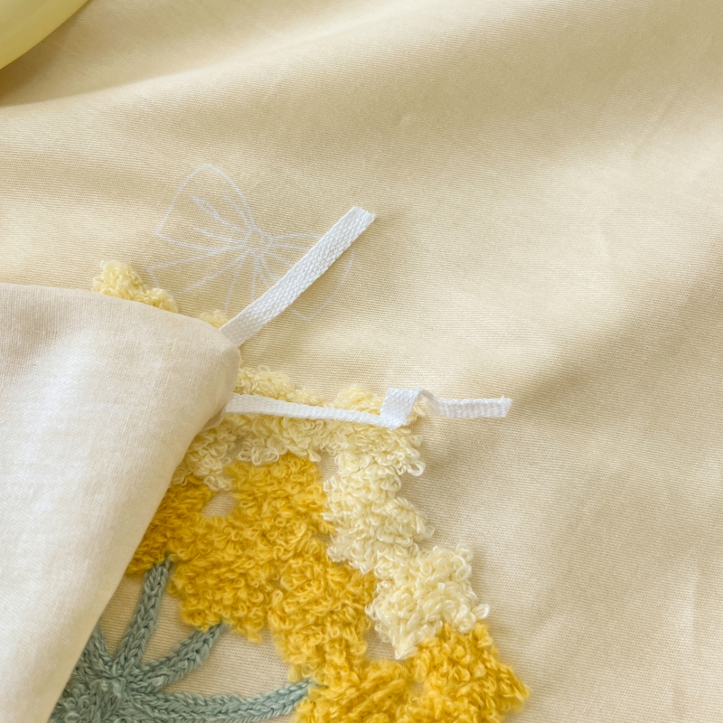 商品名称:梧桐家居 2025爆款毛巾绣皱皱双层纱四件套安娜花园安娜花园系列 安娜花园-鹅黄