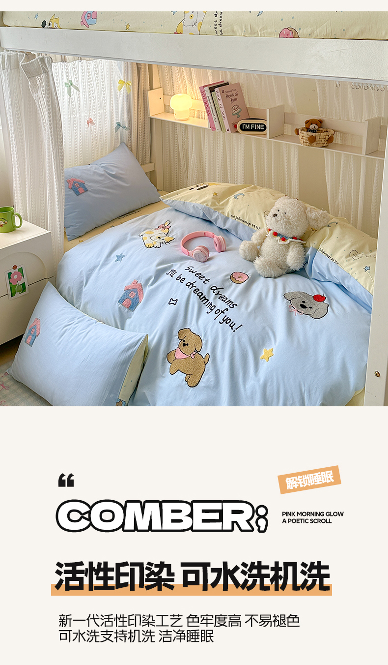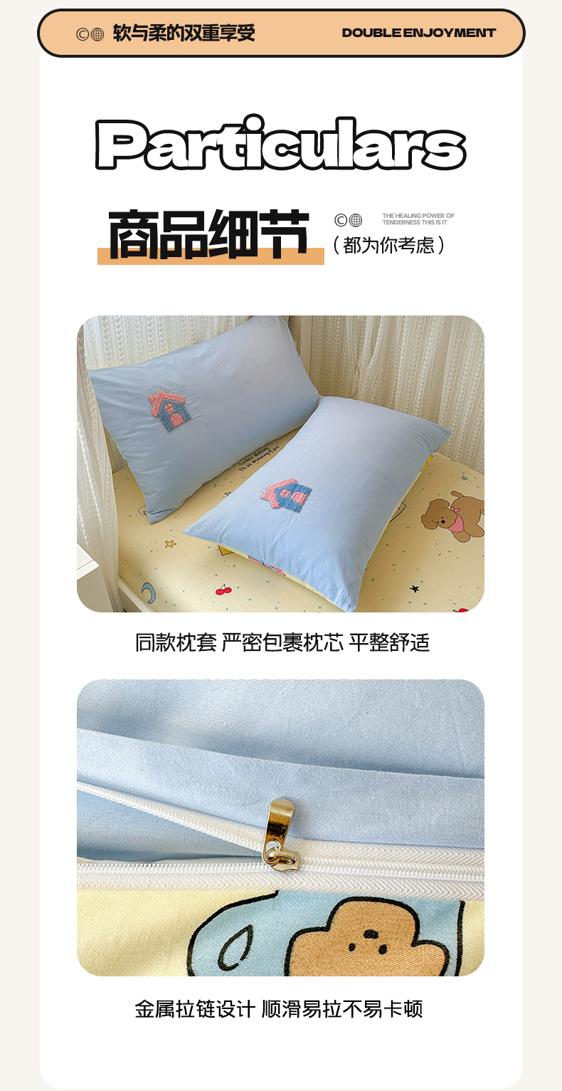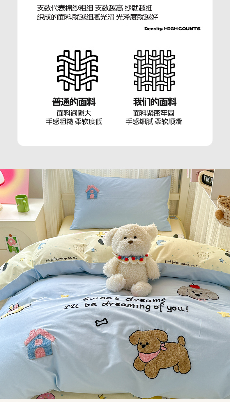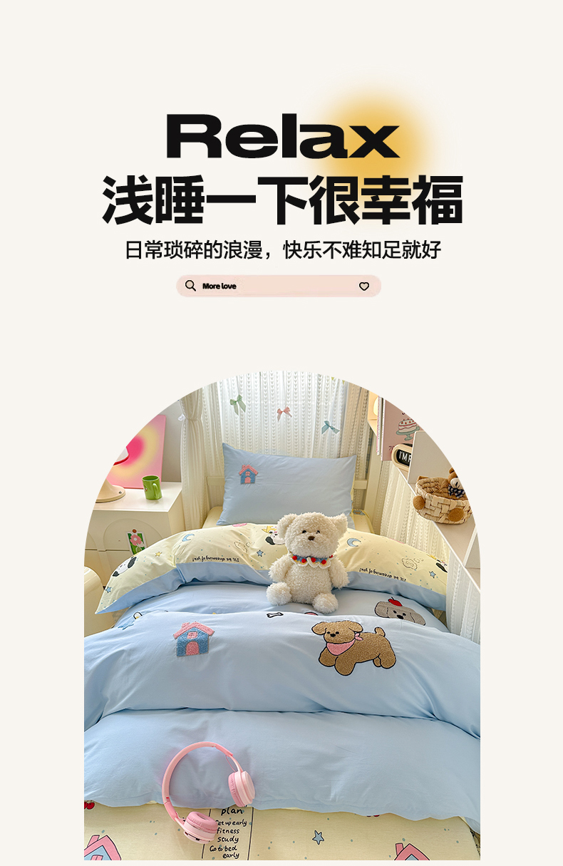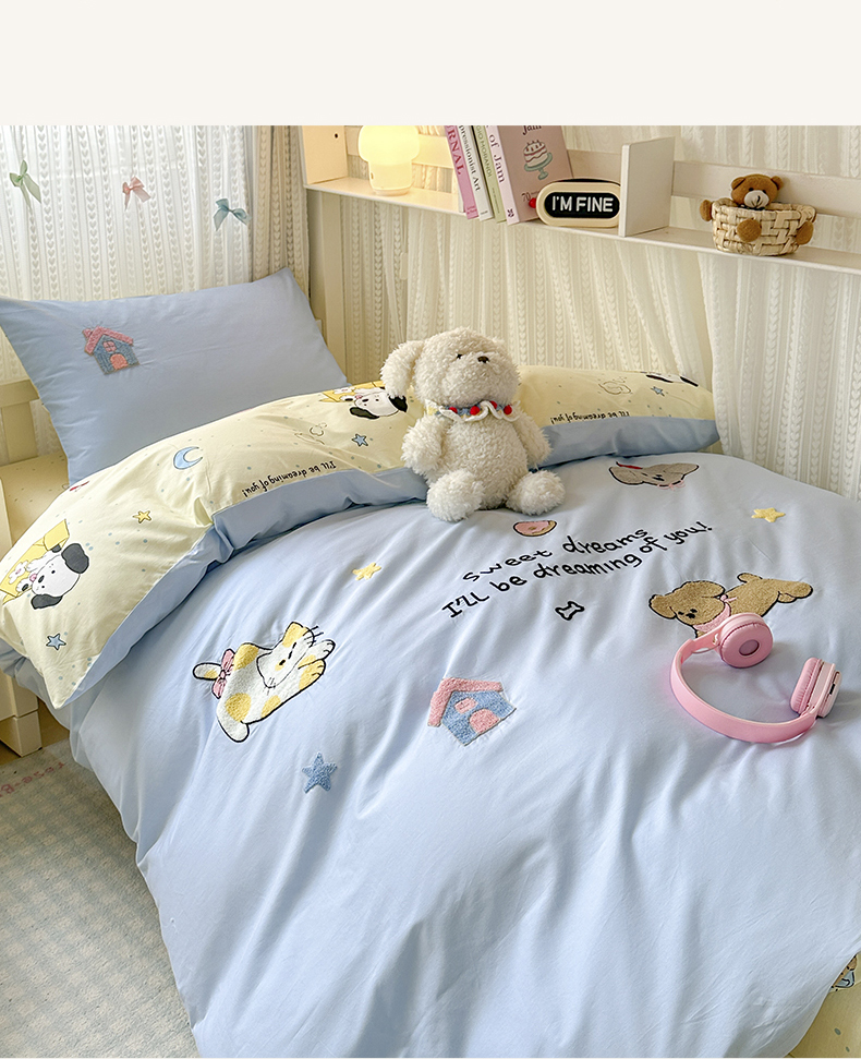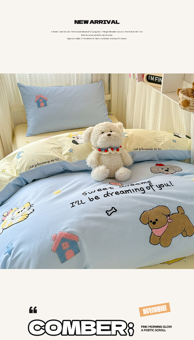 当前位置: 91家纺网 > 商品网购 > 床品套件 > 四件套 > 全棉普通四件套 > 如意朵 2025新款全棉小清新绣花学生季三四件套 萌宠乐园
