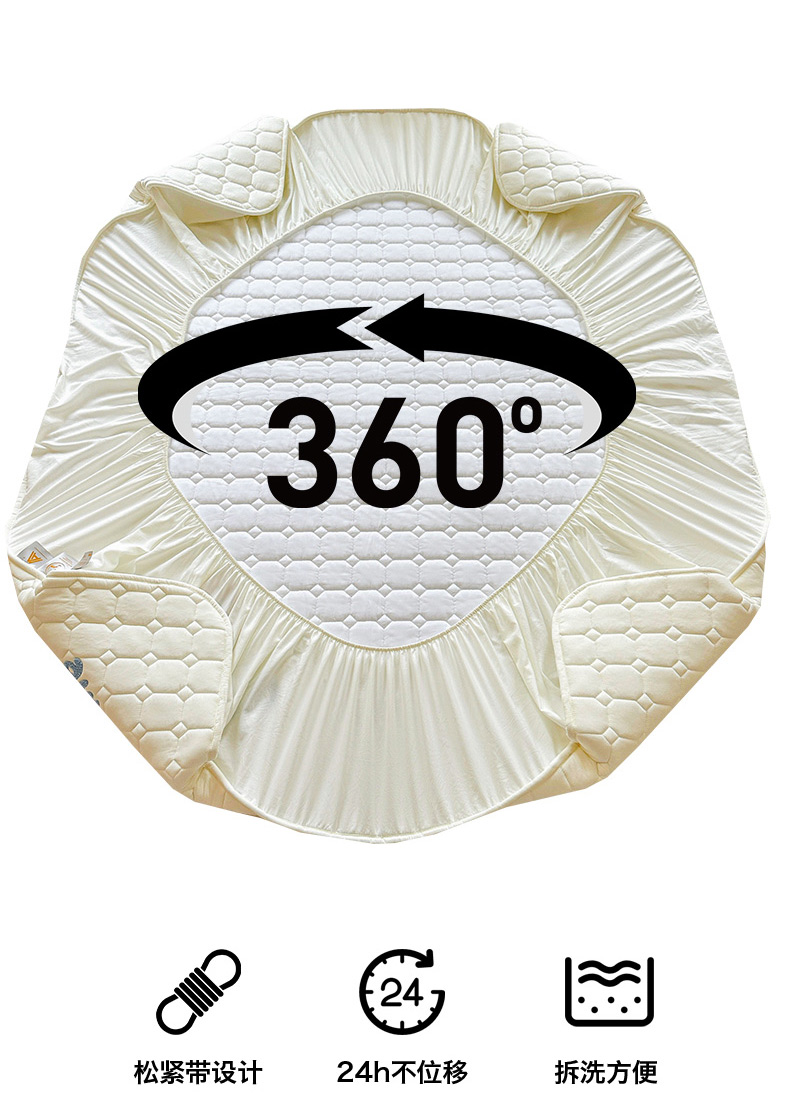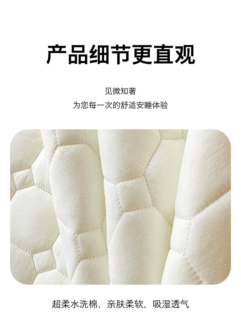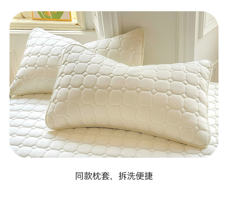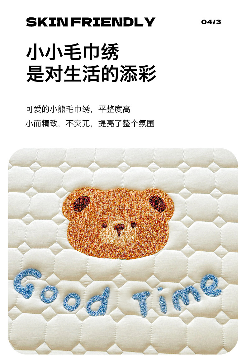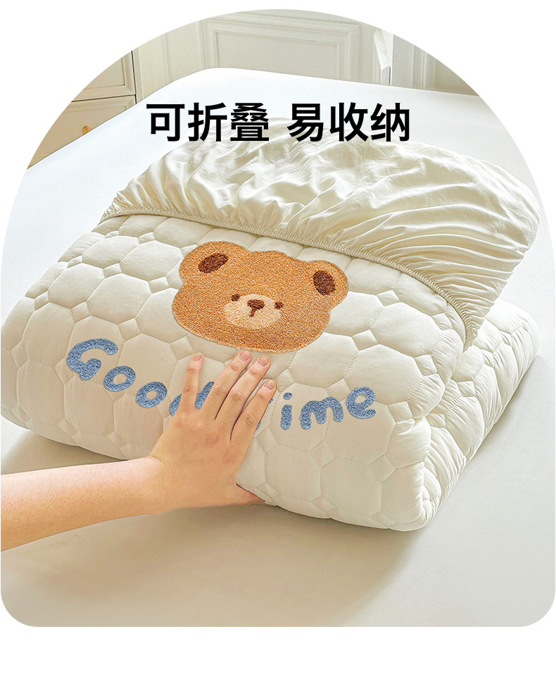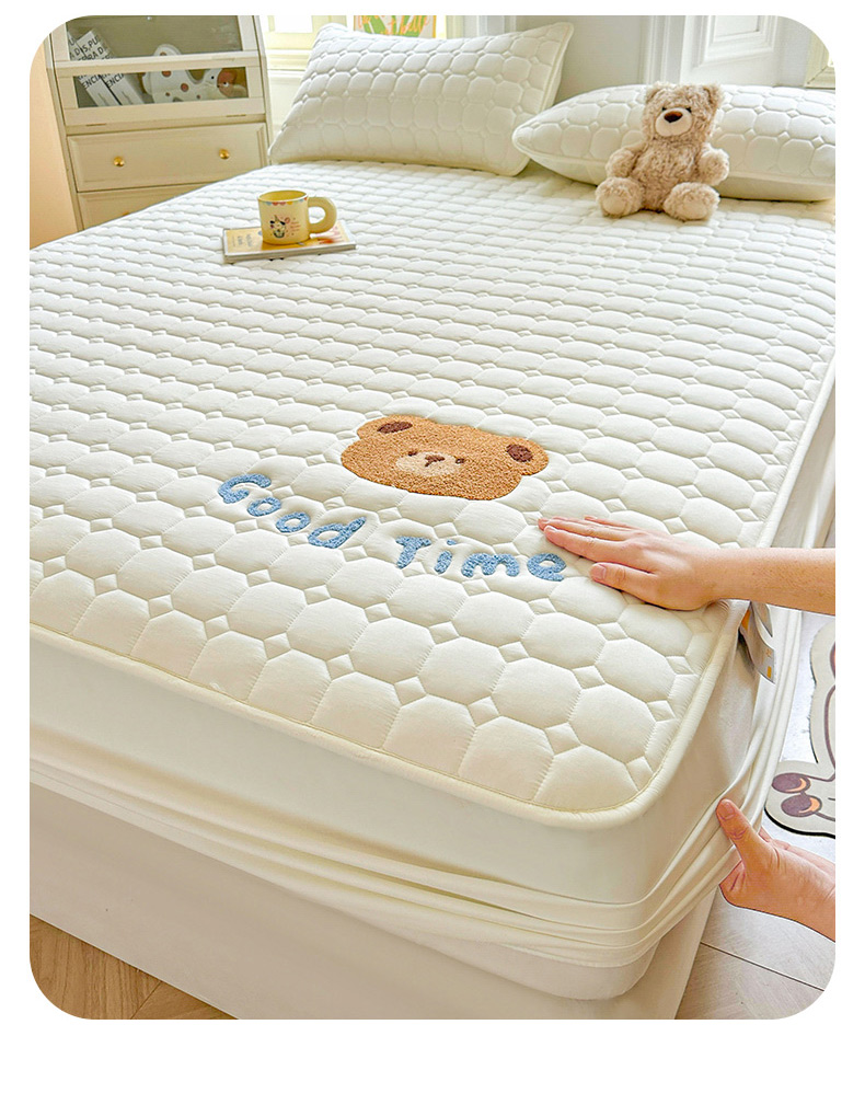 • 91家纺网 家纺一手货源 找家纺 雯豆家纺 2025新品刺绣款毛巾绣夹棉床笠三件套纯色素色床护垫保护套 笨笨熊-月光白