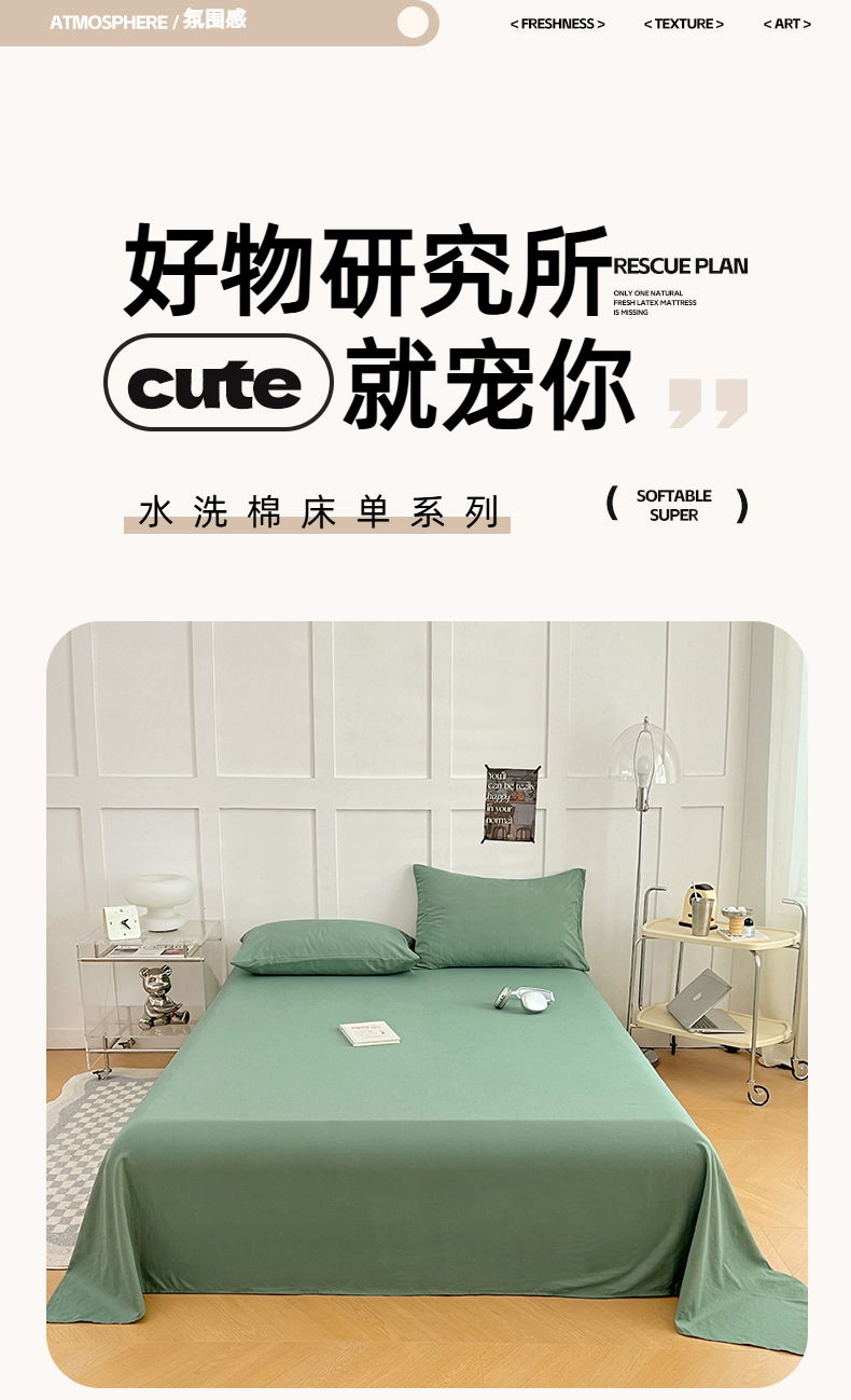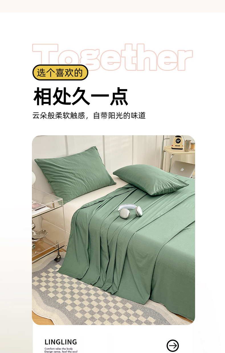 • 91家纺网 家纺一手货源 找家纺 彩韵家纺 2025新款柔软云感水洗m床单系列 橄榄绿