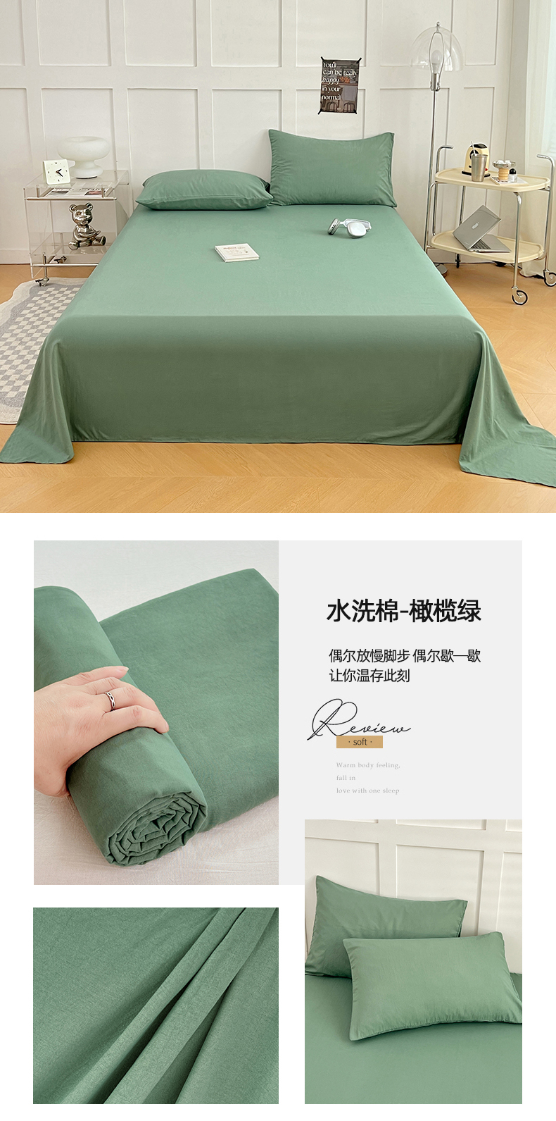 彩韵家纺 2025新款柔软云感水洗m床单系列 橄榄绿