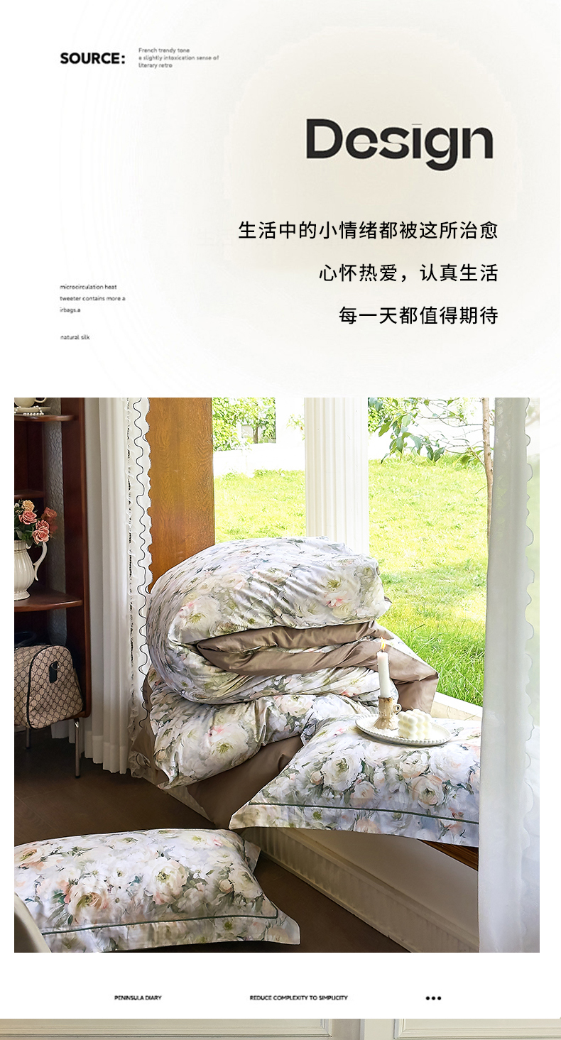 (总)由丽家纺 2025新款亲肤舒适全棉纯棉臻棉数码印花四件套系列,繁花似锦,感棉-粉,金溪-灰,金溪-咖,茂林-兰,明羽-黄,沐恩-绿,野玫瑰-紫,感棉-绿,玫瑰颂-粉