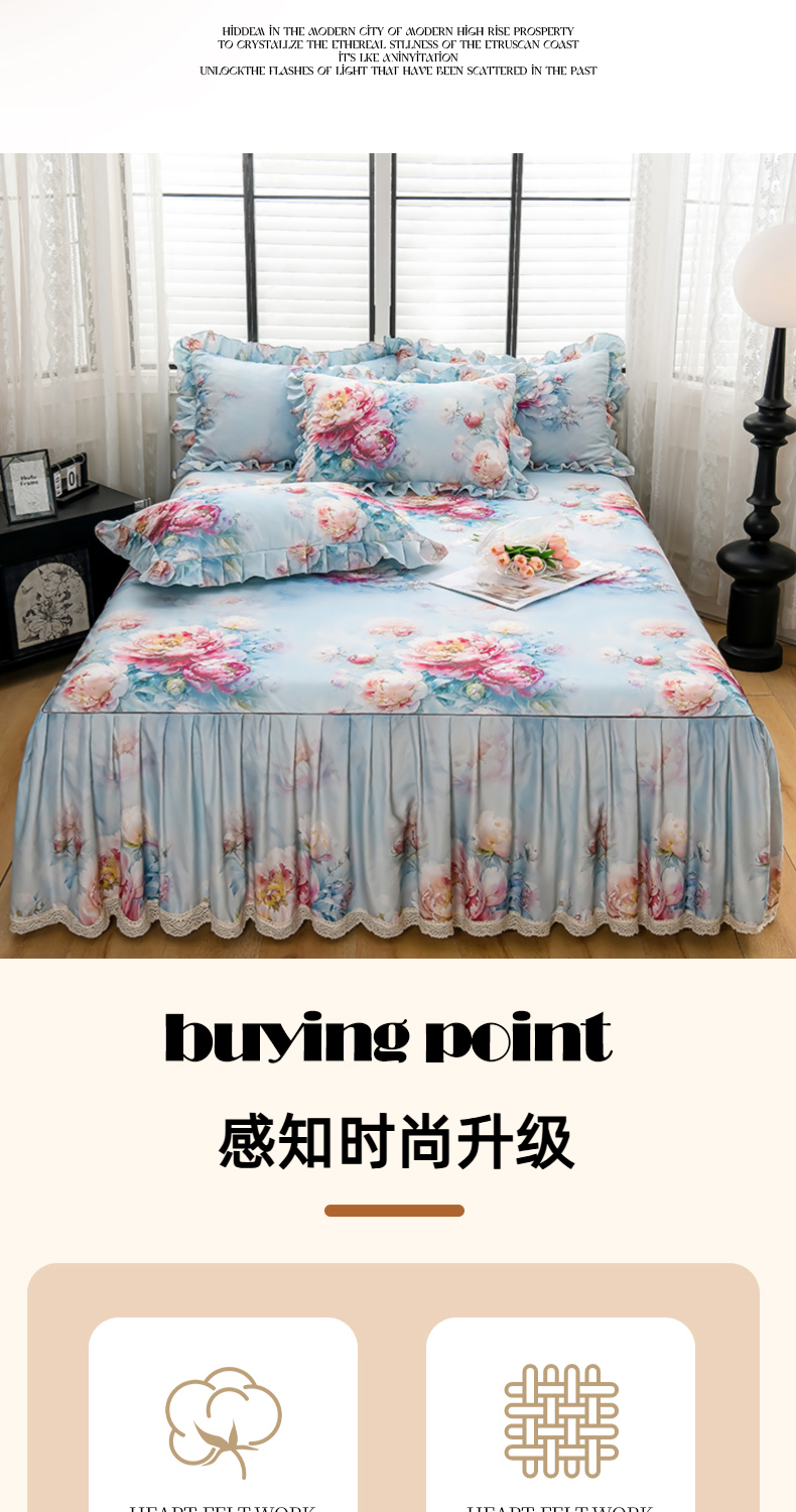 (总)家之硕家纺 2026新款精仿棉夹棉床裙三件套,彩韵,春芽,多丽粉,花恋,漫漫花开,倾城繁花,甜蜜花园,遇见浪漫