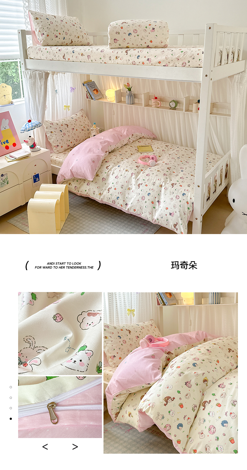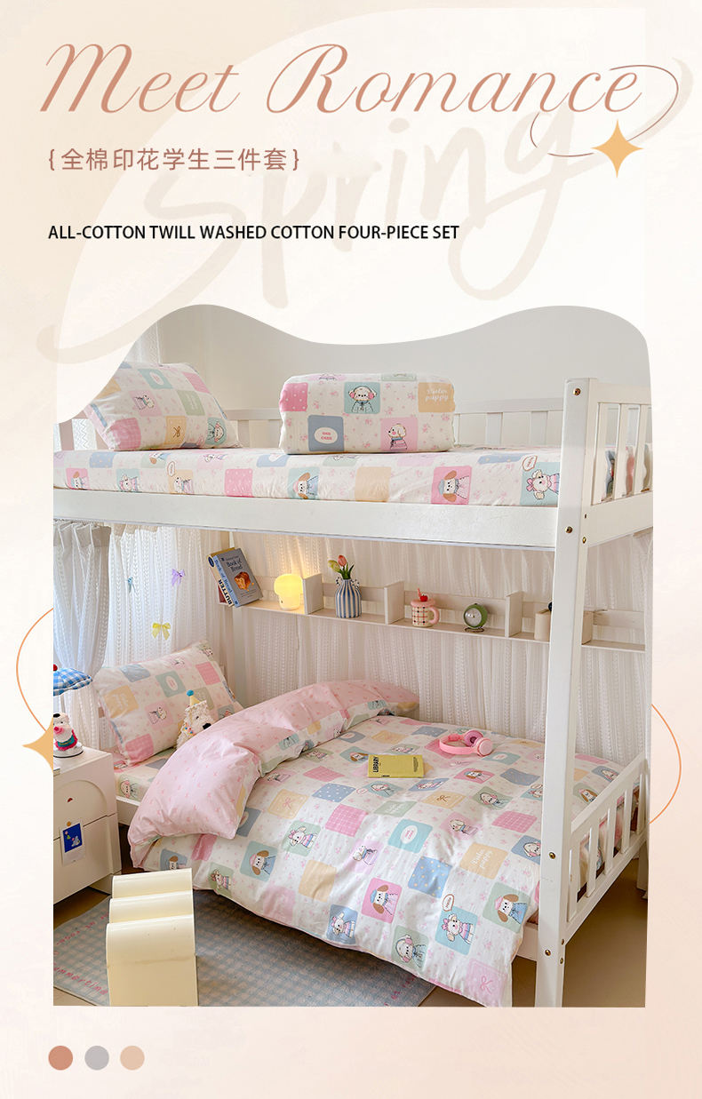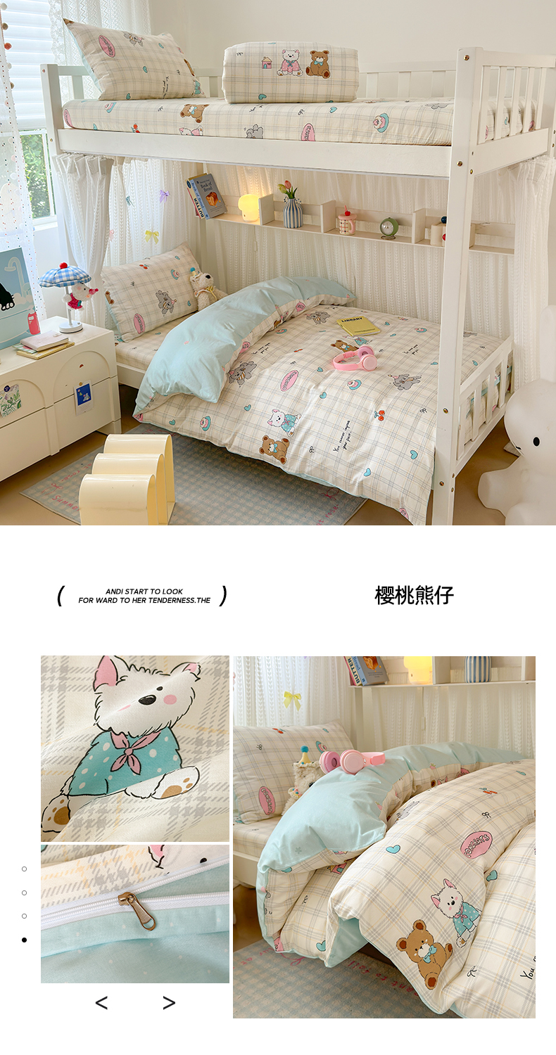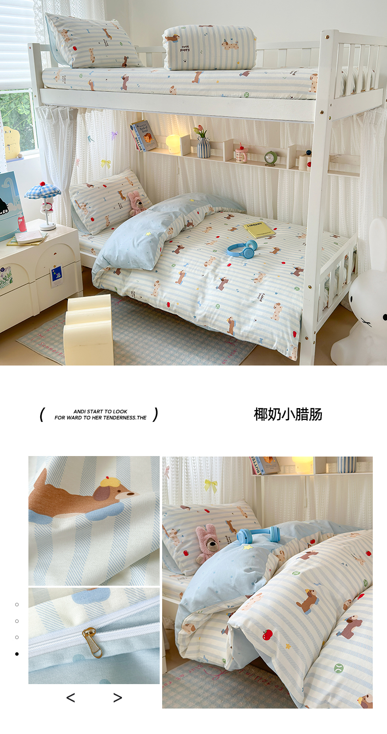 当前位置: 91家纺网 > 商品网购 > 床品套件 > 三件套 > 曼之夏 2025新款全棉纯棉印花学生宿舍上下铺三件套 开心屋