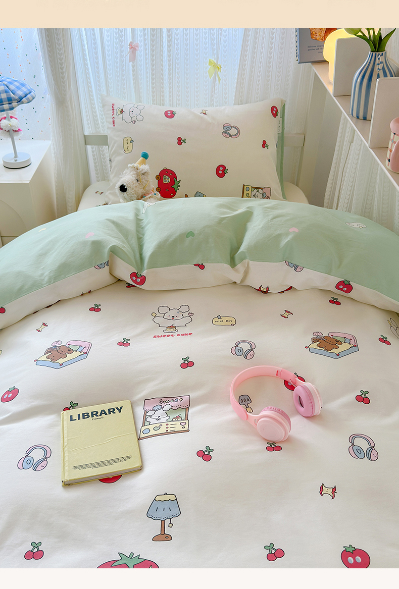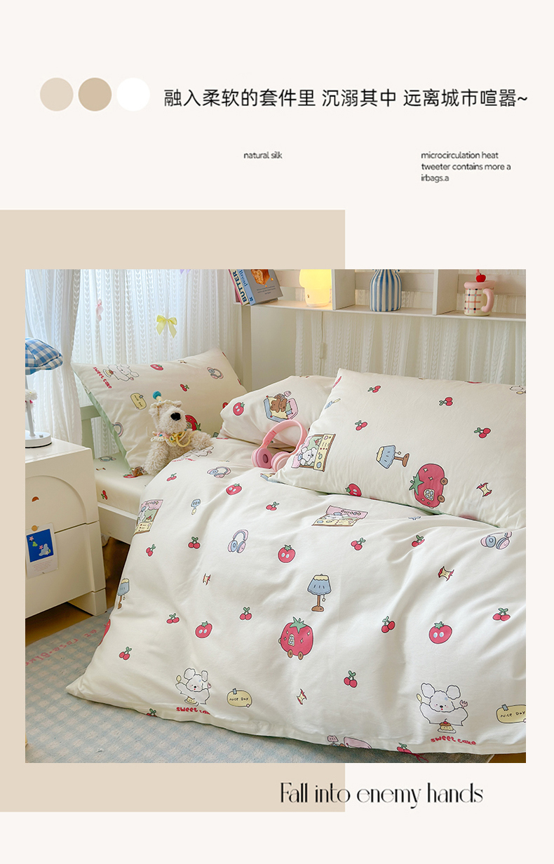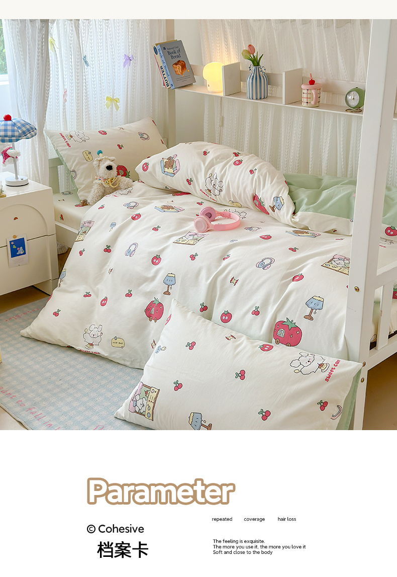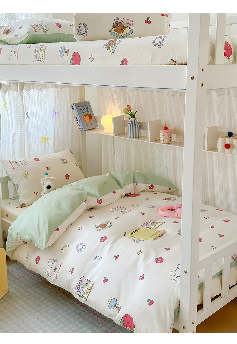 当前位置: 91家纺网 > 商品网购 > 床品套件 > 三件套 > 曼之夏 2025新款全棉纯棉印花学生宿舍上下铺三件套 童画