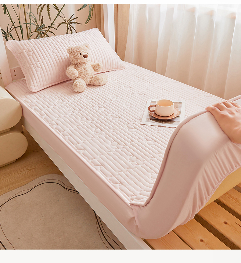 • 91家纺网 家纺一手货源 找家纺 雯豆家纺 2025新款四季款学生宿舍夹棉床笠上下铺床垫保护套 洛川-密合粉