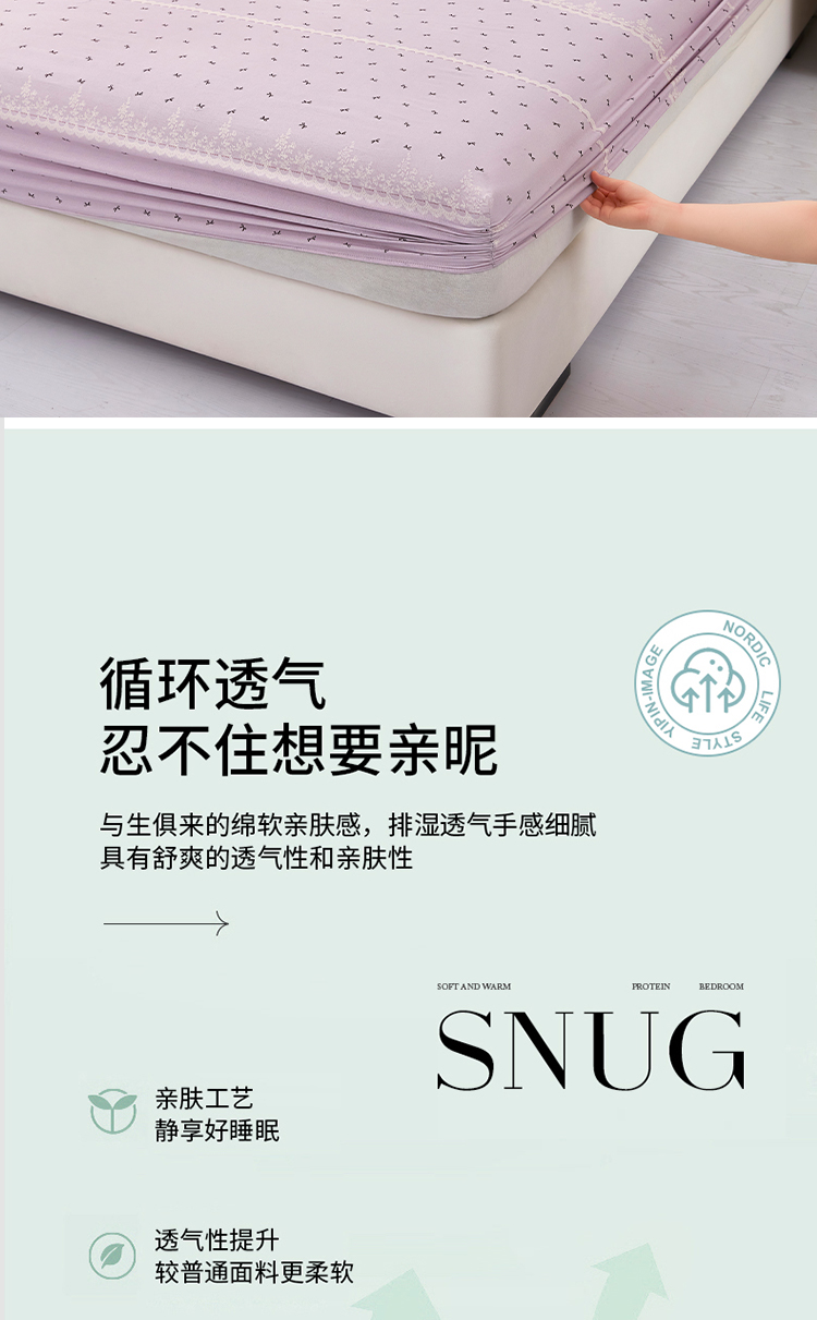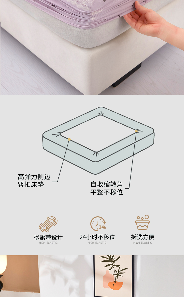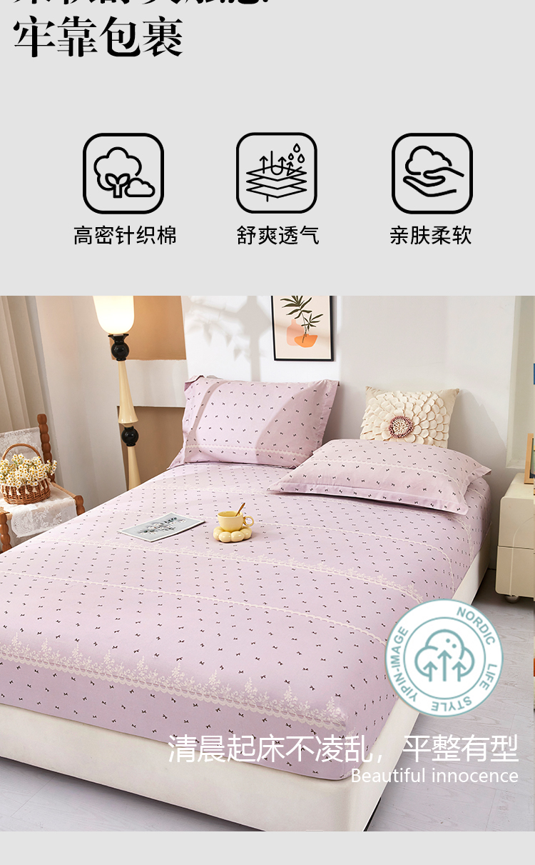 乐居家纺 2025新款针织棉双层纱单件床笠 紫韵蝴蝶