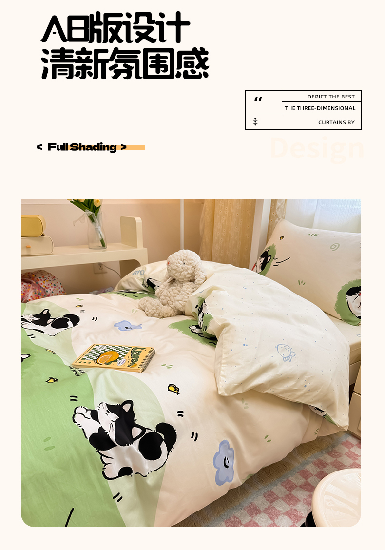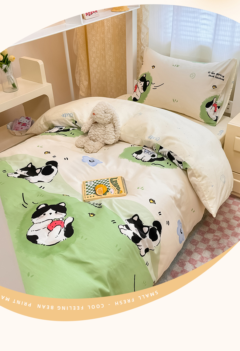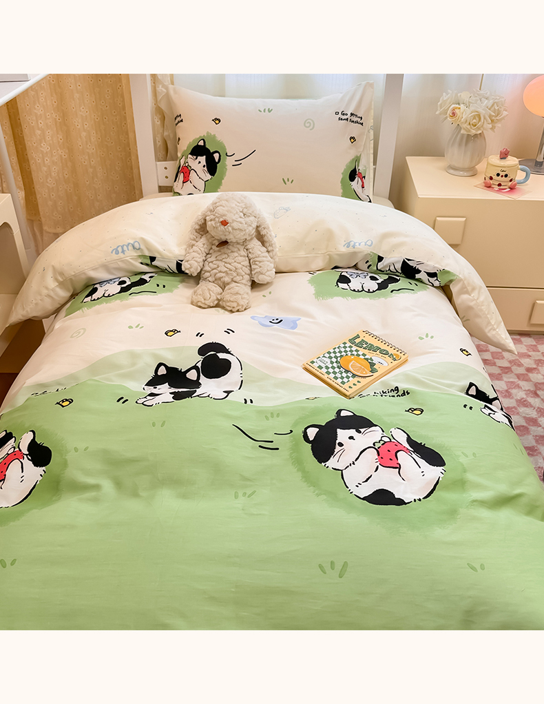 当前位置: 91家纺网 > 商品网购 > 床品套件 > 三件套 > 小懒猪 2025新款ins风小红书同款卡通小清新13372全棉纯棉AB版学生上下铺三件套 淘气喵