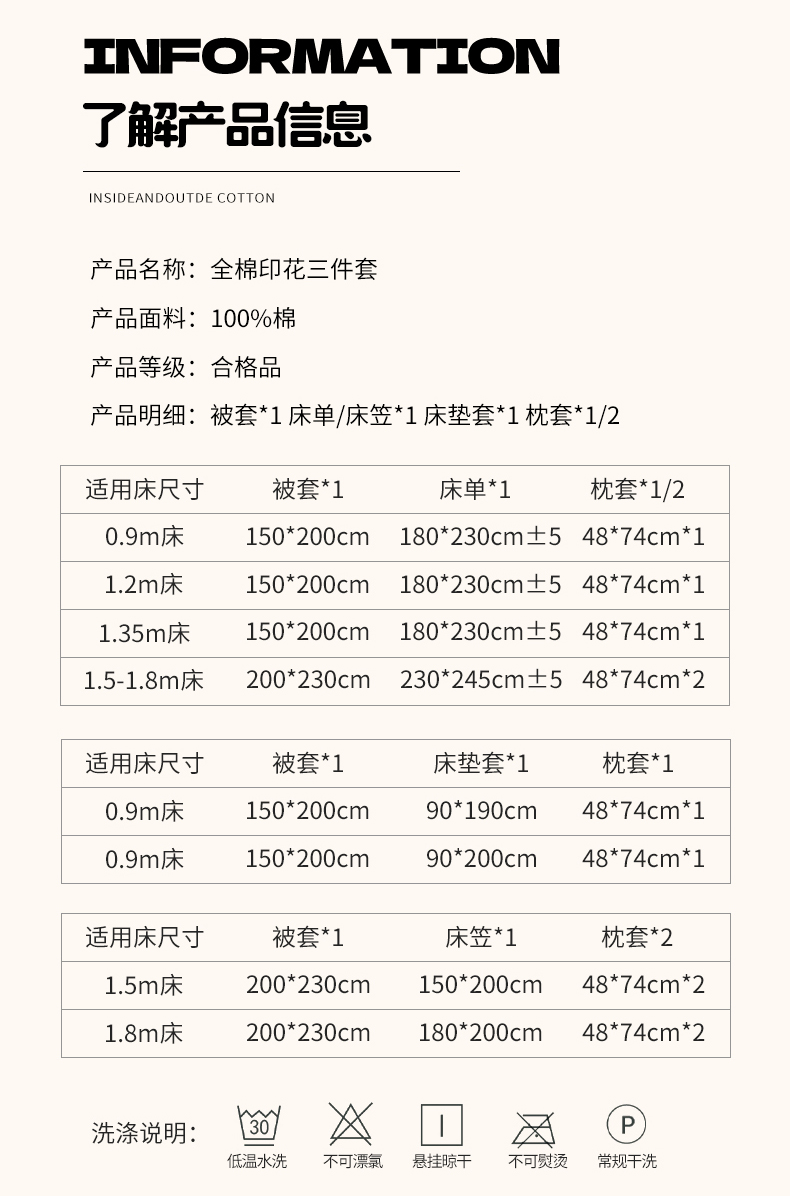 1.2m床单款三件套 | ¥90.00 |
