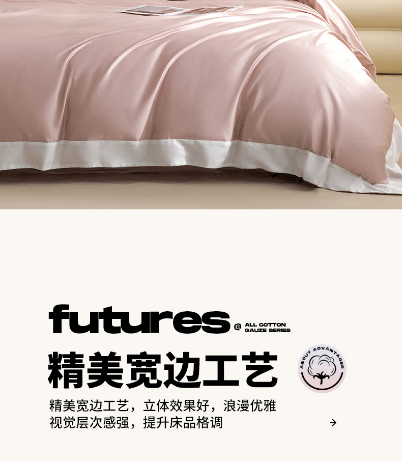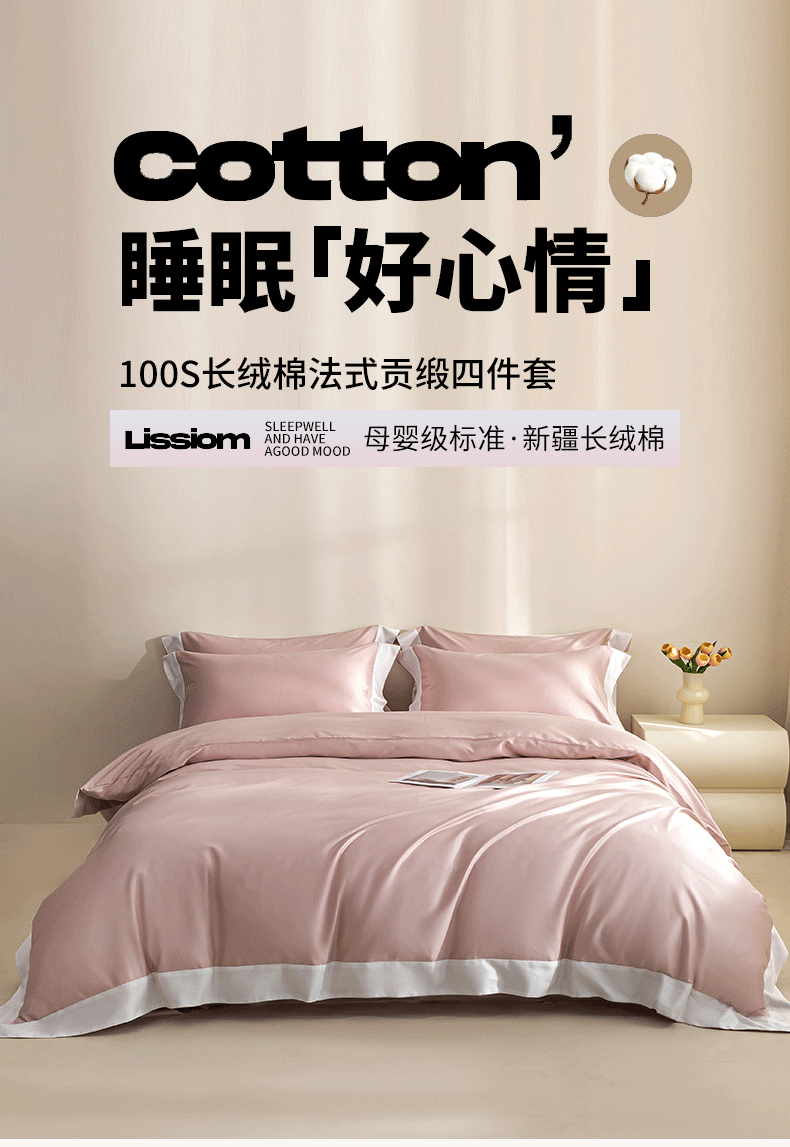当前位置: 91家纺网 > 商品网购 > 床品套件 > 四件套 > 长绒棉四件套 > 晶缦家纺 2025新款纯棉全棉50支双股贡缎长绒棉拼边四件套流光绮境- 缃月