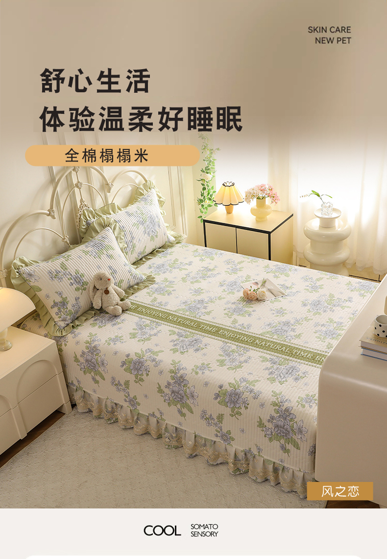 (总)美达家纺 2025新款全棉AB版单层床裙,解语花,南湘,沁雨花叶,悦棠