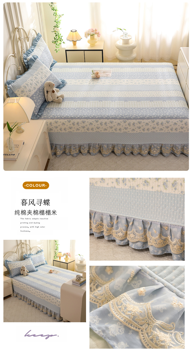 (总)美达家纺 2025新款全棉纯棉AB版蕾丝小花边单层床裙四件套,解语花,南湘,沁雨花叶,悦棠