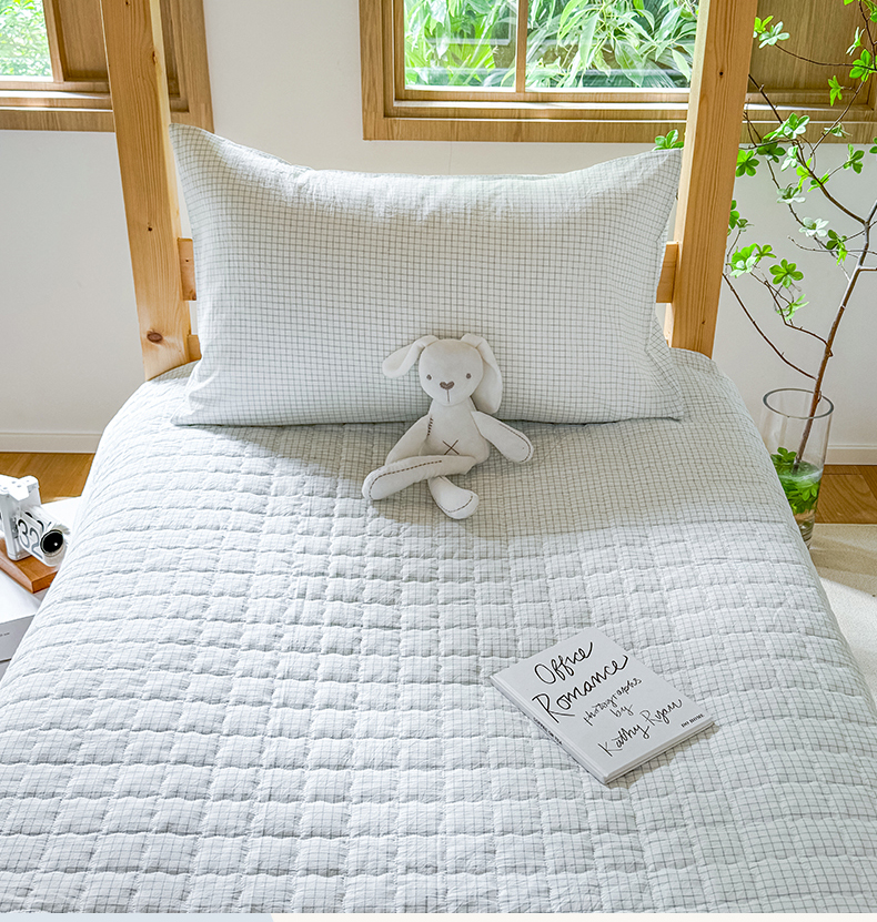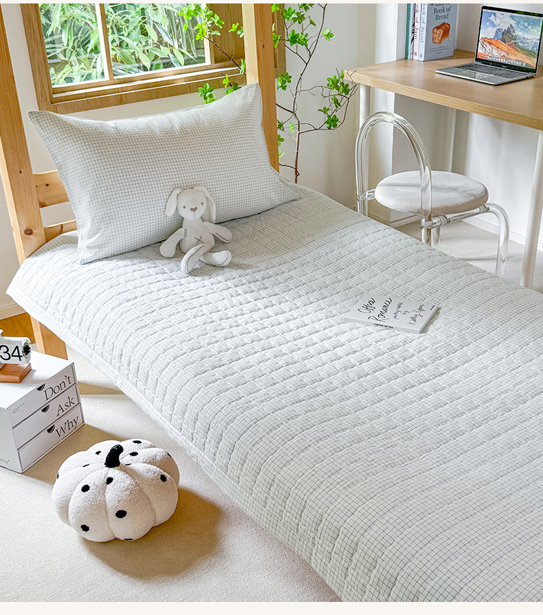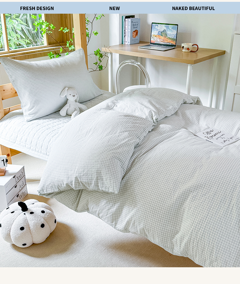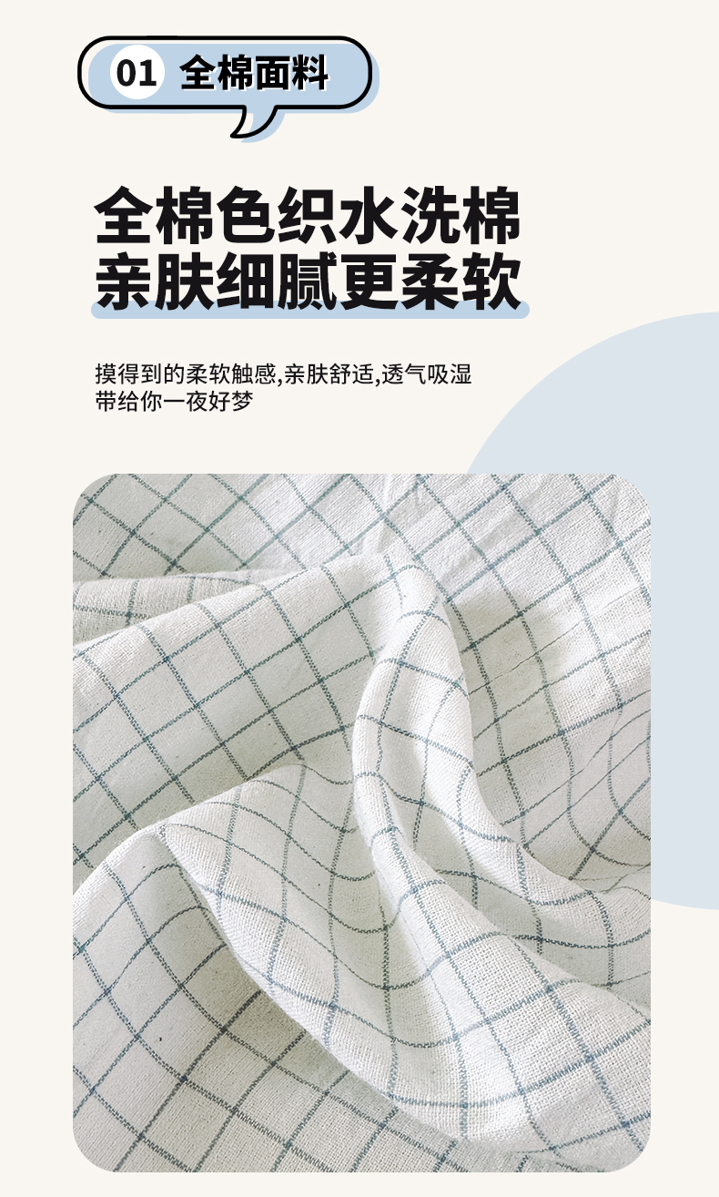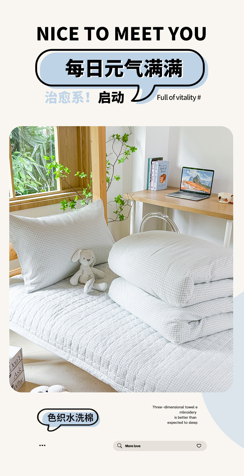商品名称:拾物记 2025新款全棉纯棉色织水洗棉床盖学生宿舍三件套上下铺三件套 米乐蓝