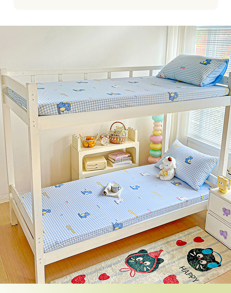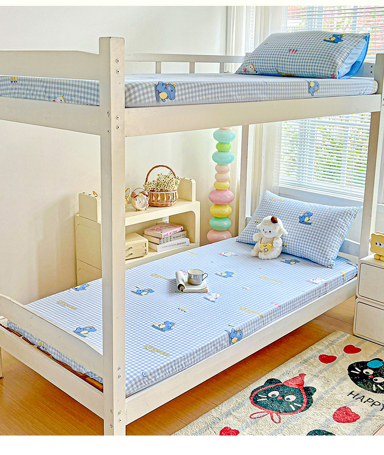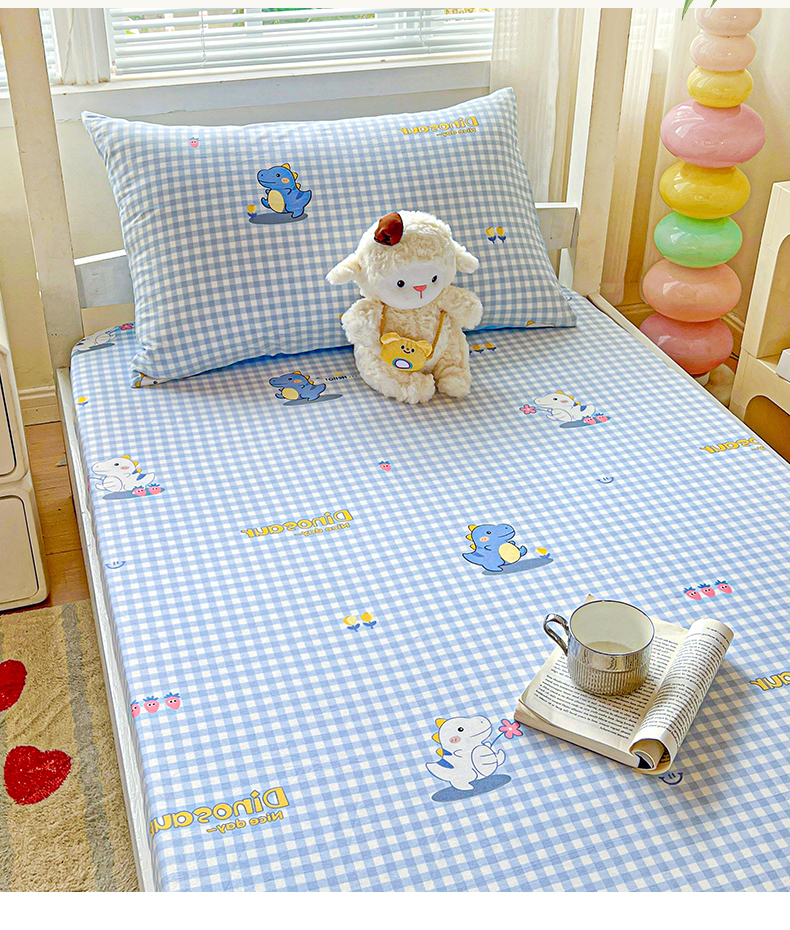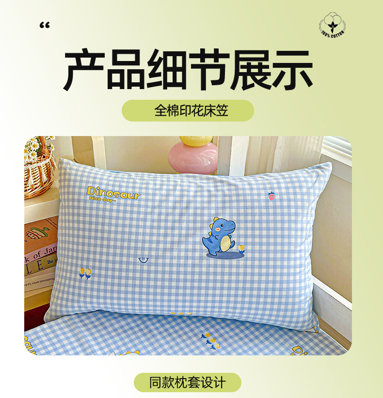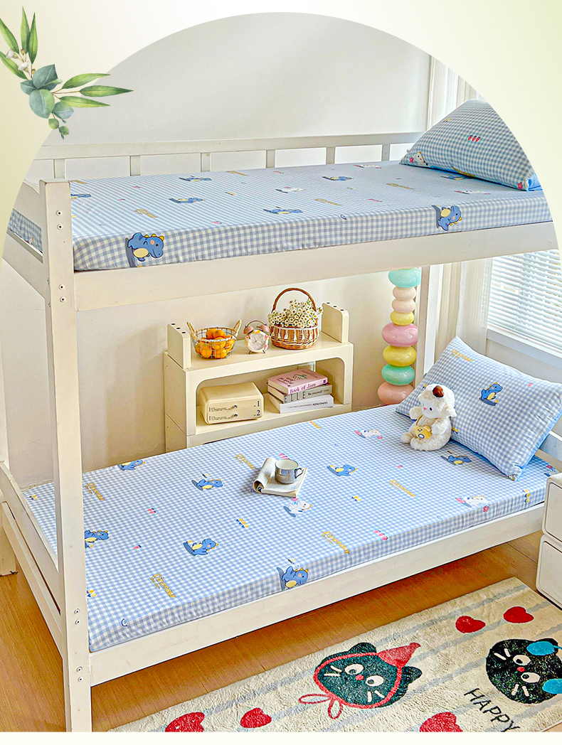 • 91家纺网 家纺一手货源 找家纺 名兮家居 2025新款全棉纯棉13372学生印花上下铺床笠单床笠单品床笠单件床笠 格子恐龙