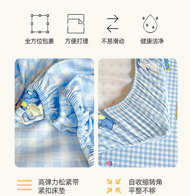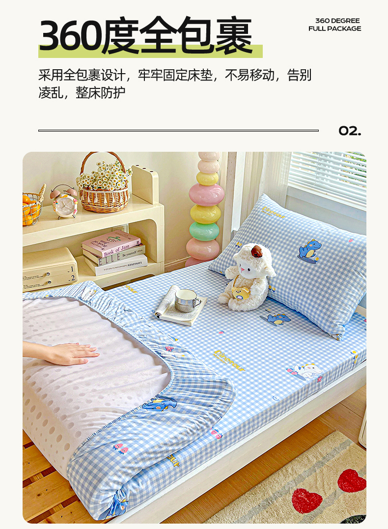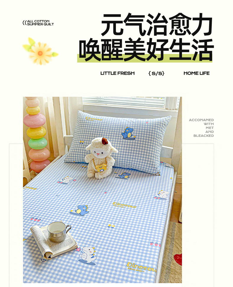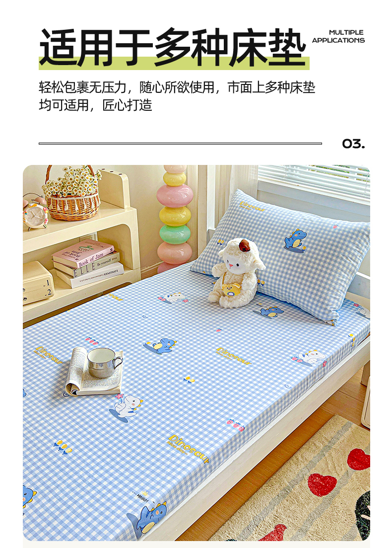 • 91家纺网 家纺一手货源 找家纺 名兮家居 2025新款全棉纯棉13372学生印花上下铺床笠单床笠单品床笠单件床笠 格子恐龙