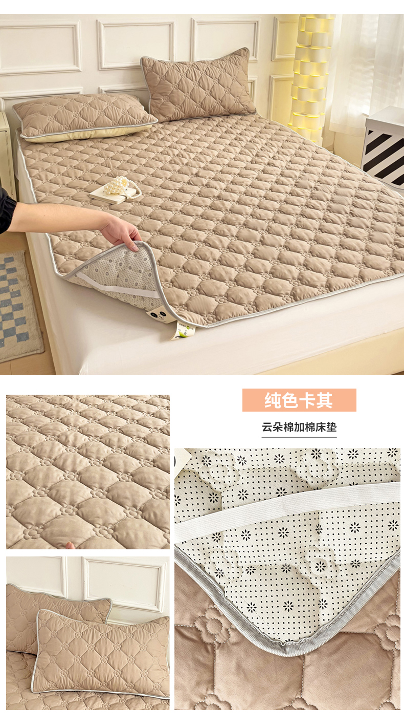 商品名称:纽缦家纺 2025新款云朵棉加厚夹棉床垫床护垫 纯色卡其
