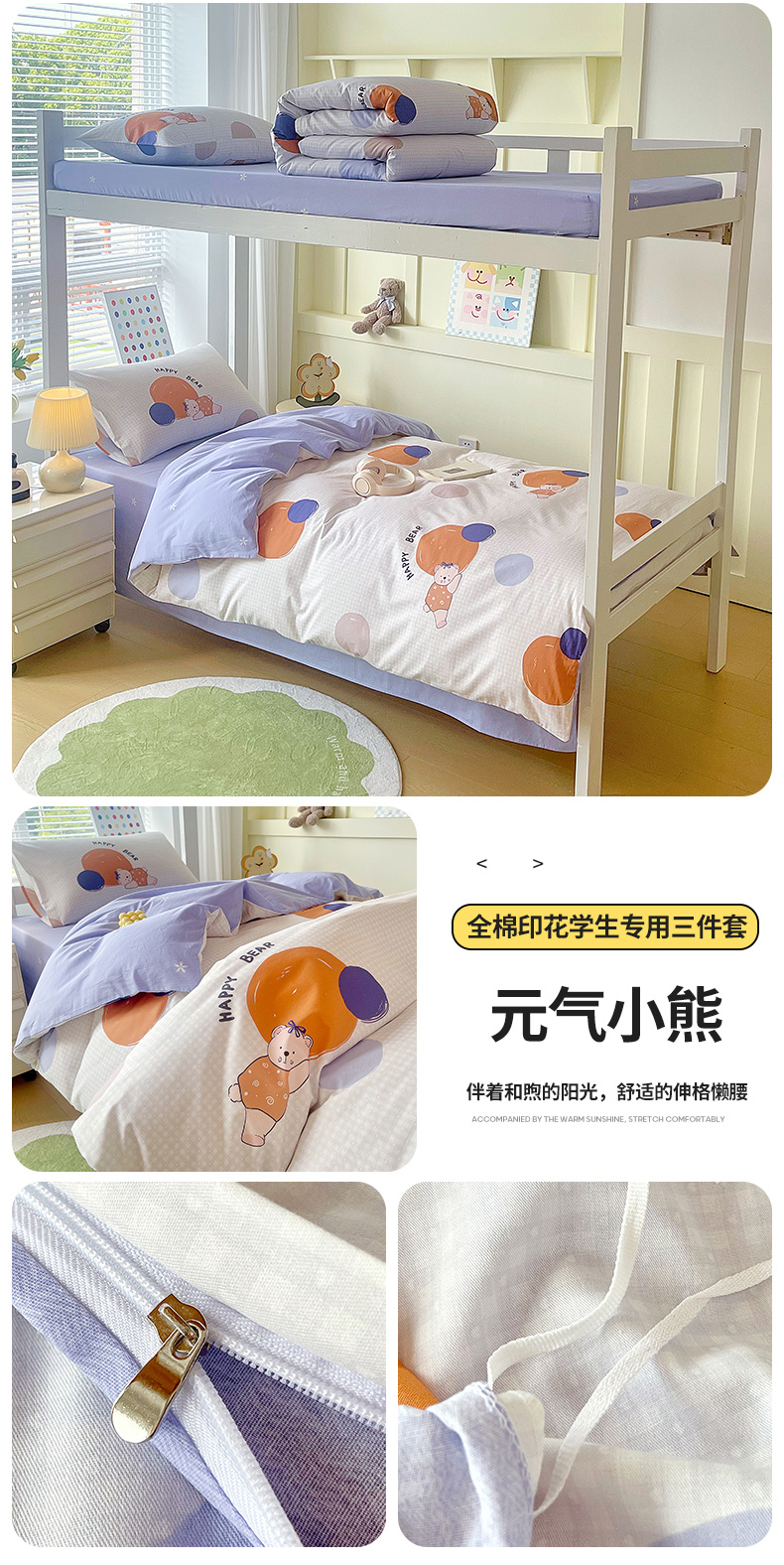 悦织湾家纺 2025新款全棉印花13372学生三件套 A6元气小熊