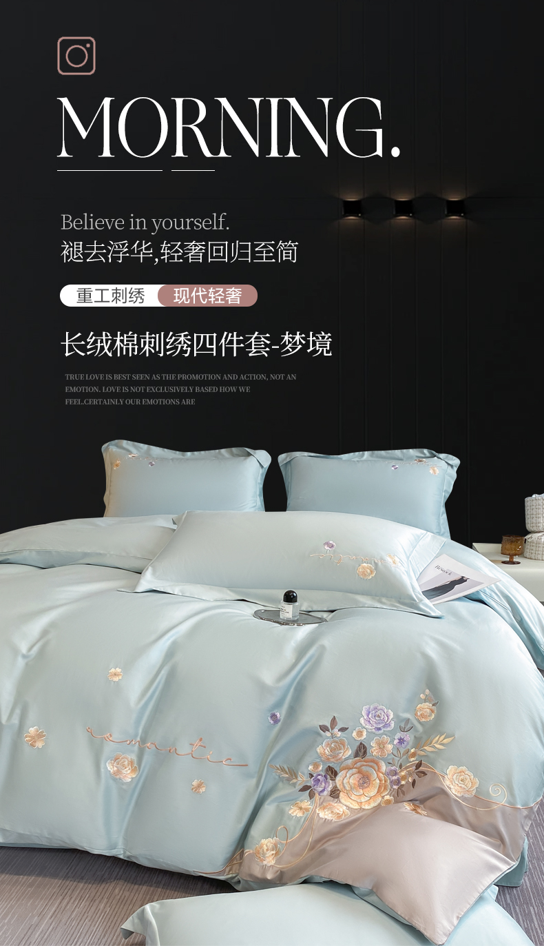 当前位置: 91家纺网 > 商品网购 > 床品套件 > 四件套 > 长绒棉四件套 > 桃园 2025新款纯棉全棉长绒棉刺绣绣花四件套-梦境(高端礼盒) 梦境-飘蓝