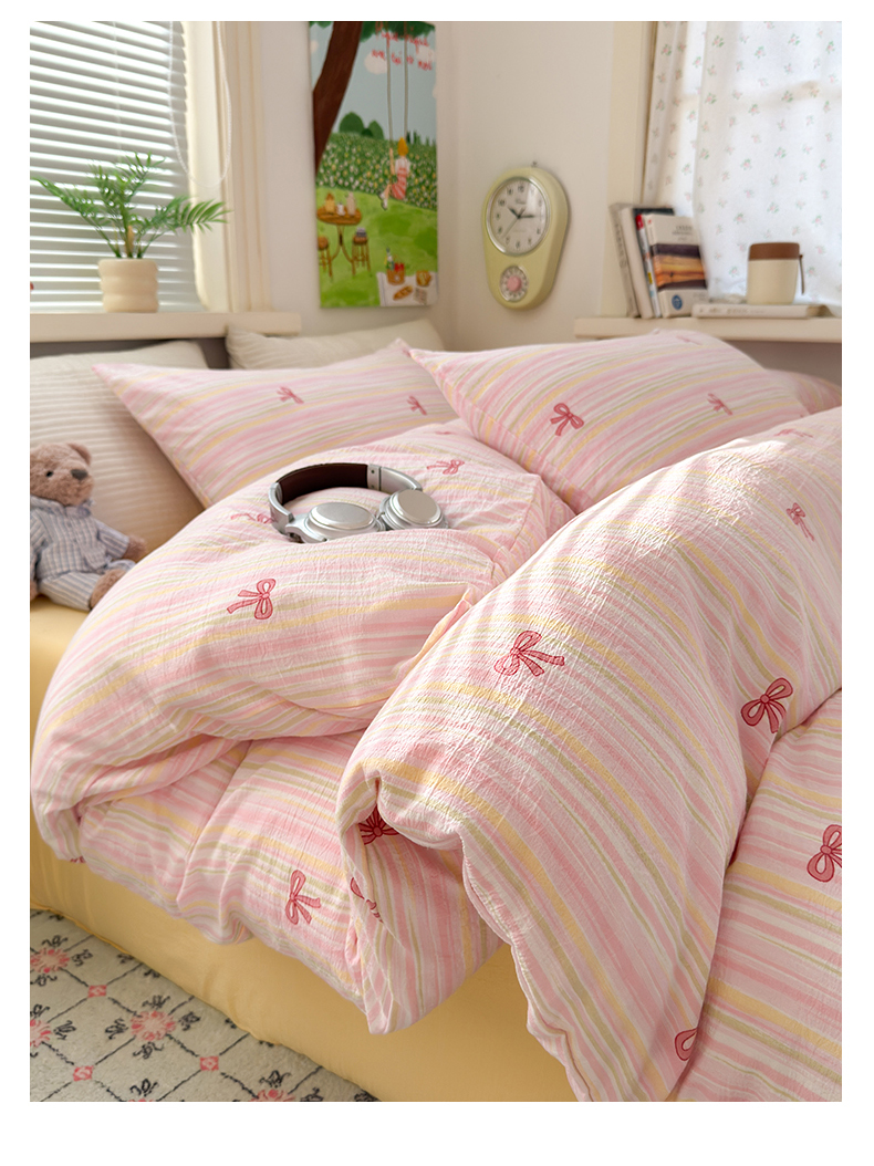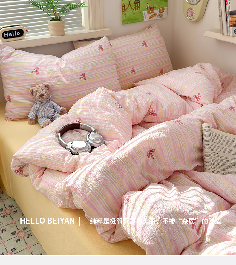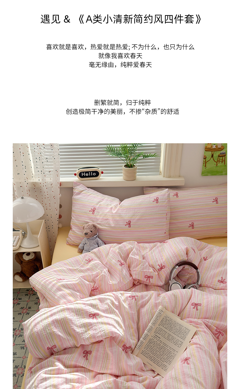 当前位置: 91家纺网 > 商品网购 > 床品套件 > 四件套 > 双层纱四件套 > 沐芷 2025 A类木棉双层纱简约风床上四件套柔软手感宿舍三件套 粉粉结