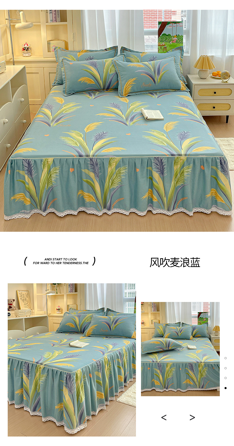 • 91家纺网 家纺一手货源 找家纺 纽缦家纺 2025新款全棉纯棉磨毛印花单品床裙 床裙单件 曼迪咖