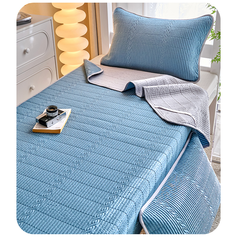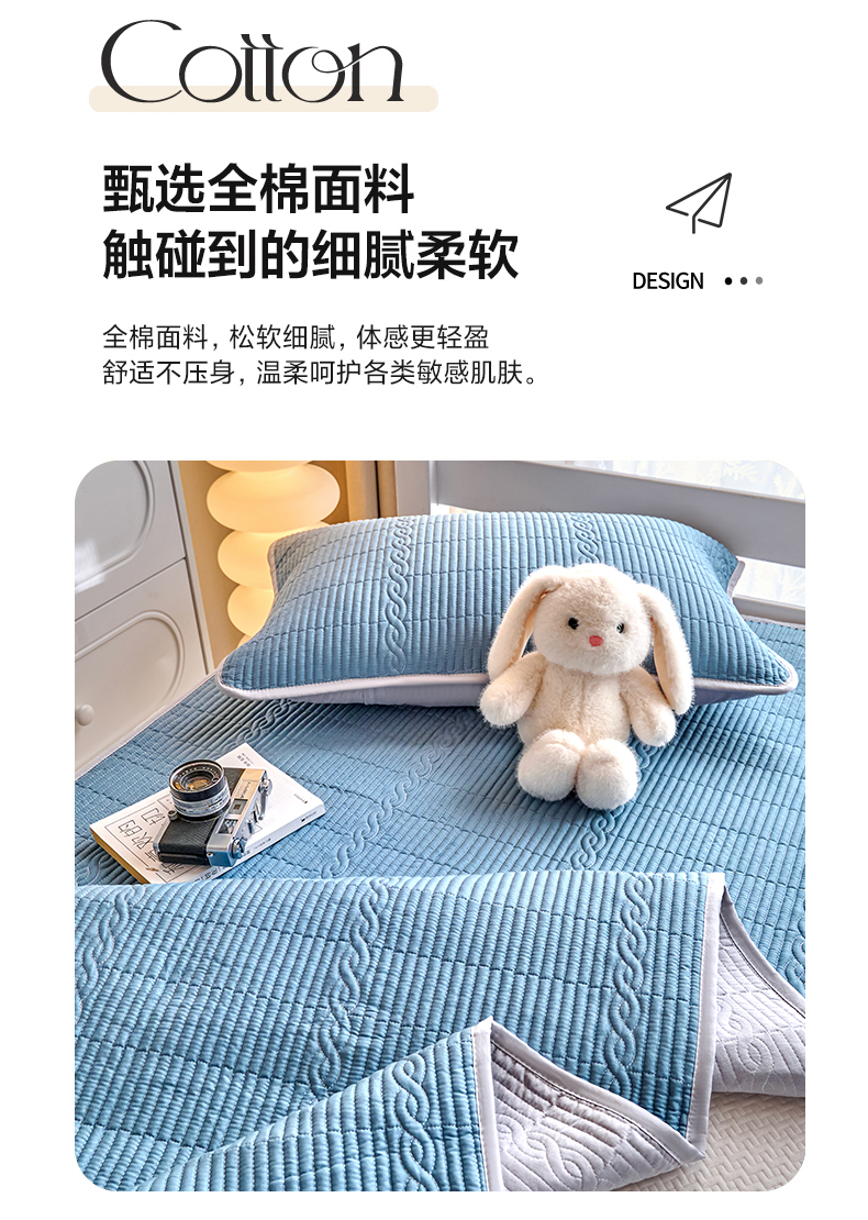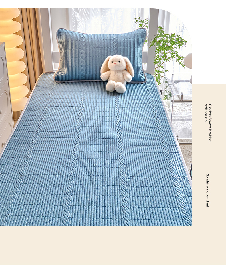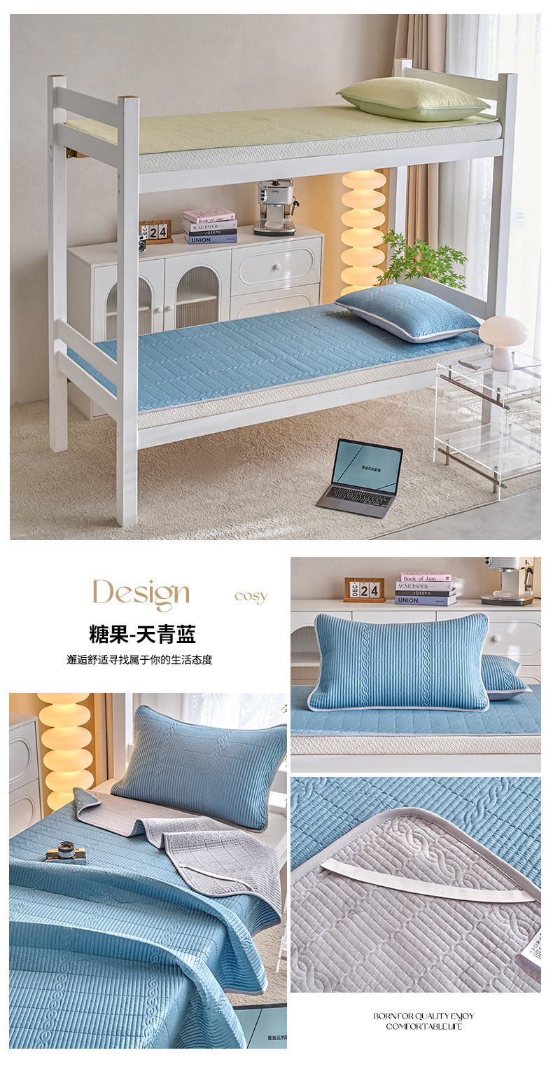 • 91家纺网 家纺一手货源 找家纺 X猫先生 2025新款全棉学生床盖纯色夹棉床单床护垫少女风撞色-糖果系列 糖果-天青蓝
