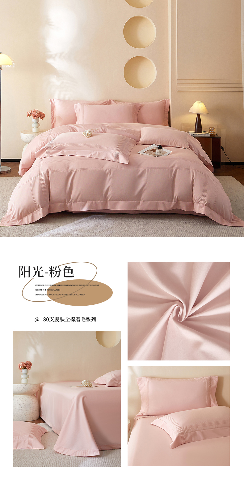 (总)金太阳80支婴肤全棉磨毛四件套,阳光粉色,阳光蓝色,阳光深豆沙,阳光鼠尾草绿,阳光银灰,阳光紫云灰