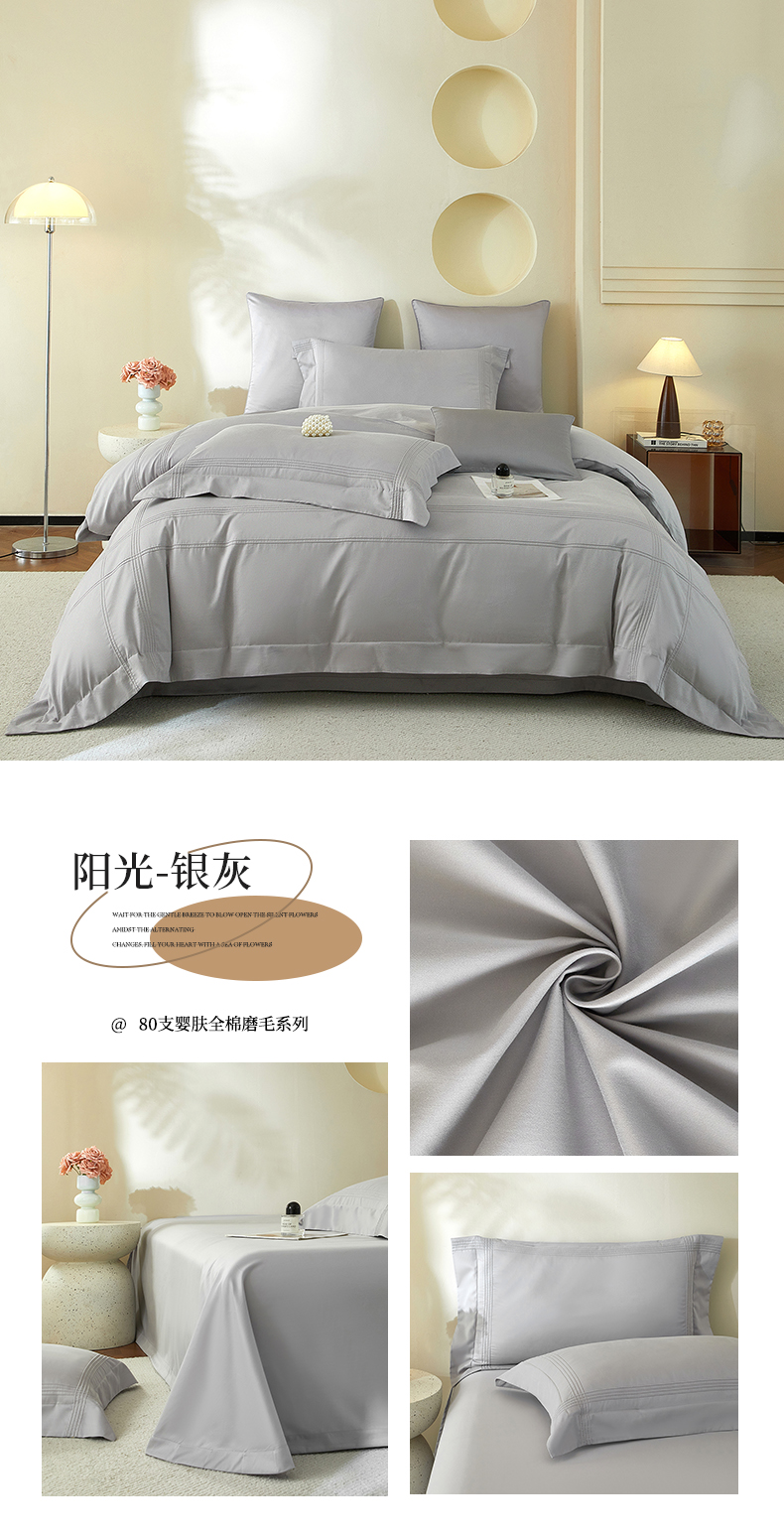 商品名称:金太阳80支婴肤全棉磨毛四件套 阳光紫云灰