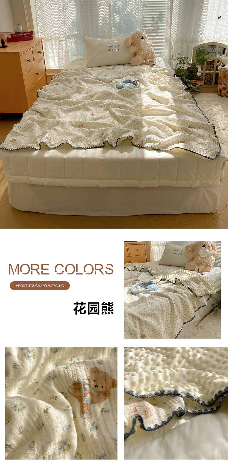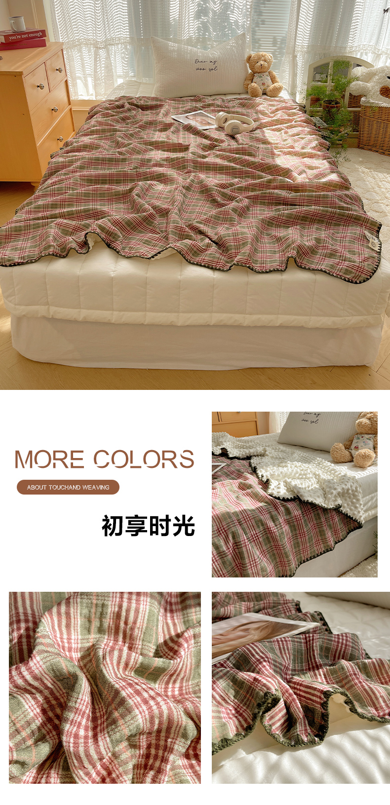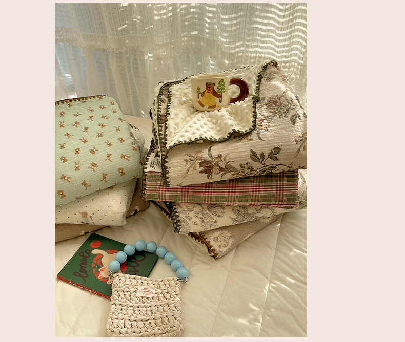 商品名称:三朵家纺 2025新款全棉纯棉绉绉纱+宝宝绒多功能毯盖毯毯子 小确幸