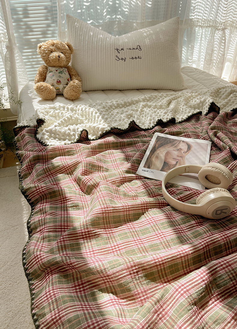 三朵家纺 2025新款全棉纯棉绉绉纱+宝宝绒多功能毯盖毯毯子 小确幸