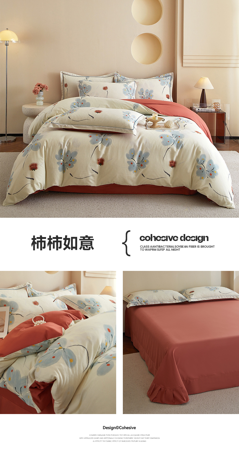 当前位置: 91家纺网 > 商品网购 > 床品套件 > 四件套 > 全棉普通四件套 > 沐白家居 2025新款全棉生态磨毛四件套柿柿如意