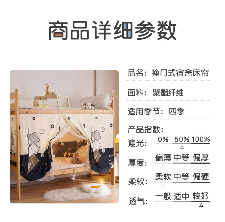商品名称:(总)大学生宿舍床帘蚊帐一体式 上下铺隐私帘遮光帘