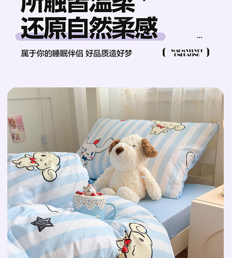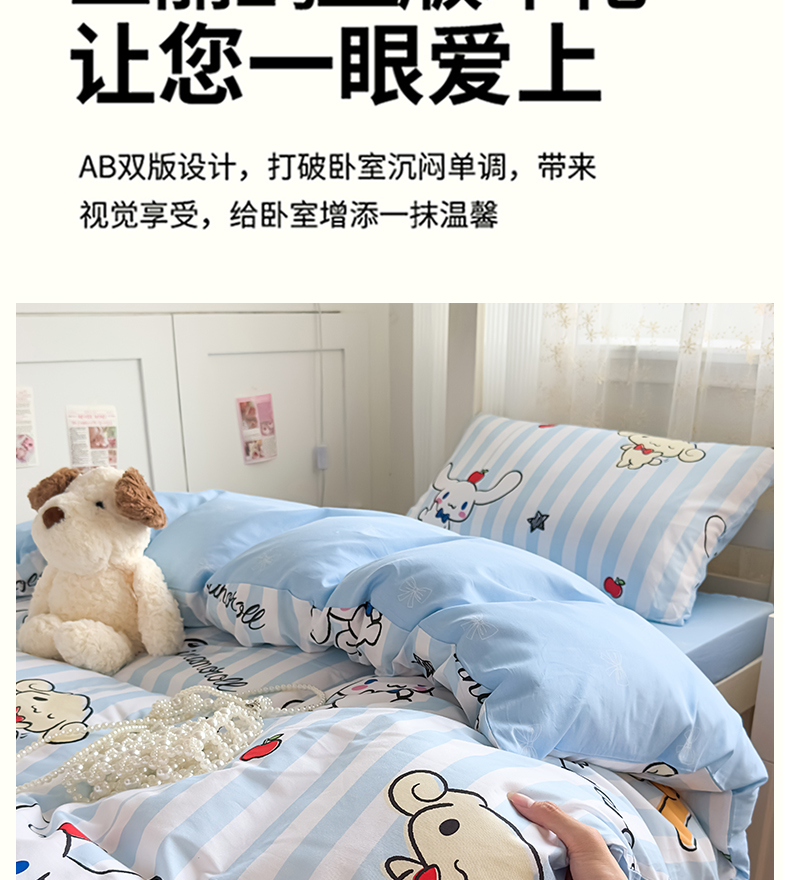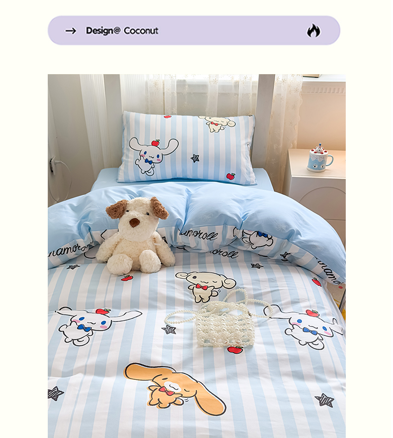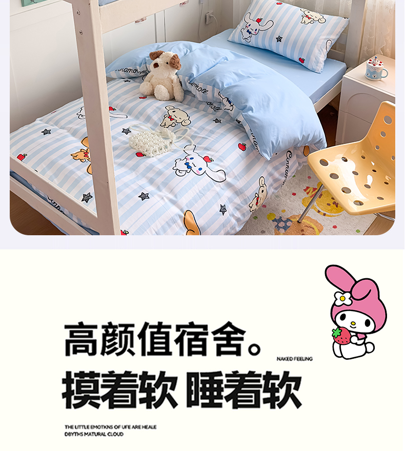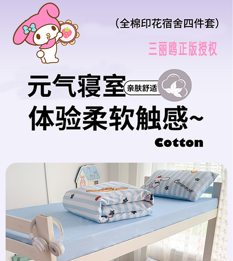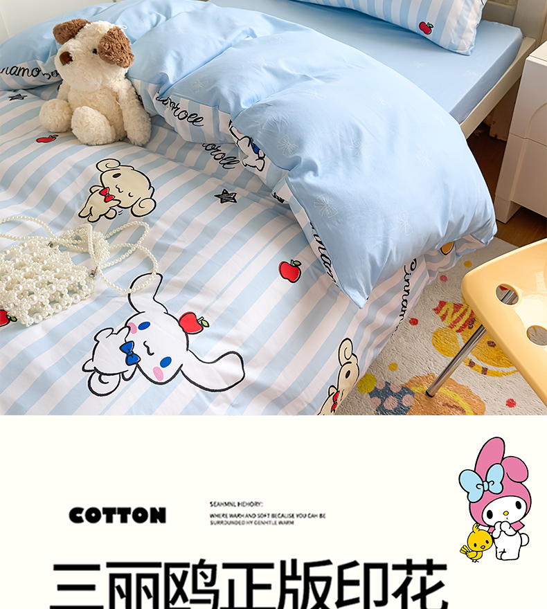 当前位置: 91家纺网 > 商品网购 > 床品套件 > 四件套 > 全棉普通四件套 > 浩诚 2025新款三丽鸥专版花型全棉纯棉学生三件套四件套 肉桂