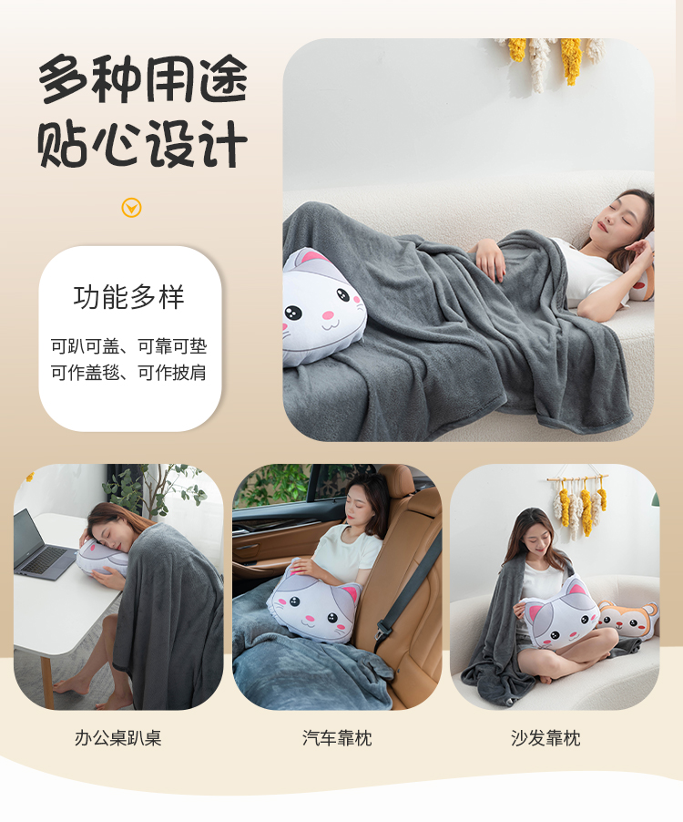 (总)新奇异 2025新款数码印花多功能抱枕被,快乐青蛙,快乐小狗,领结小熊,快乐小象,快乐猫咪,好运蓝熊