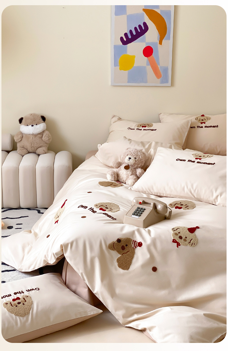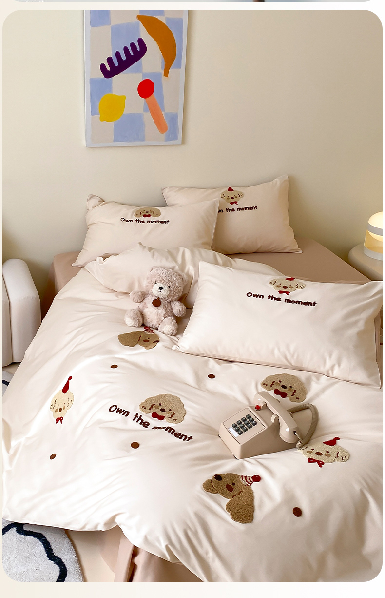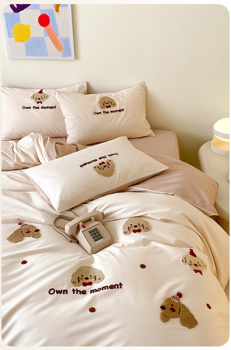 云栖2025全棉刺绣纯色纯棉长绒棉四件套-乐萌系列 萌萌狗