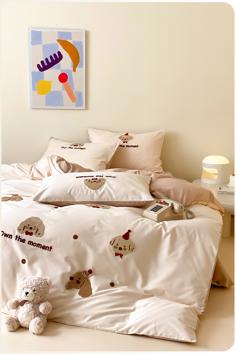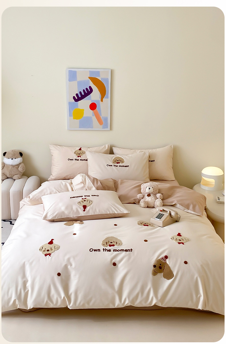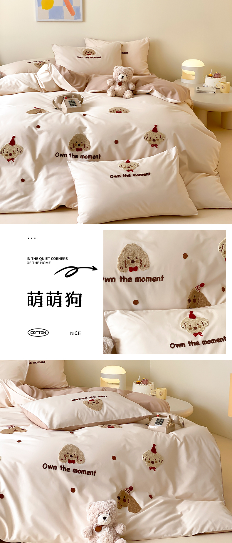 商品名称:云栖2025全棉刺绣纯色纯棉长绒棉四件套-乐萌系列 萌萌狗