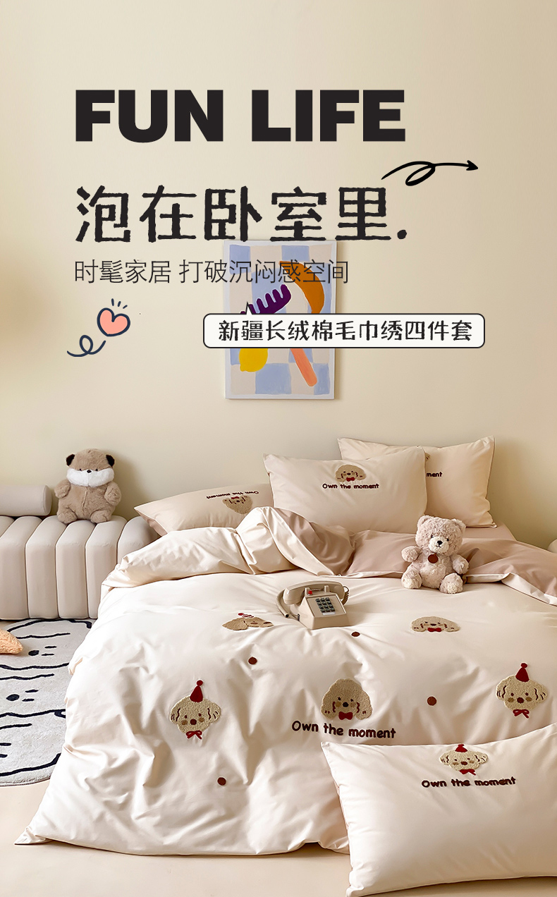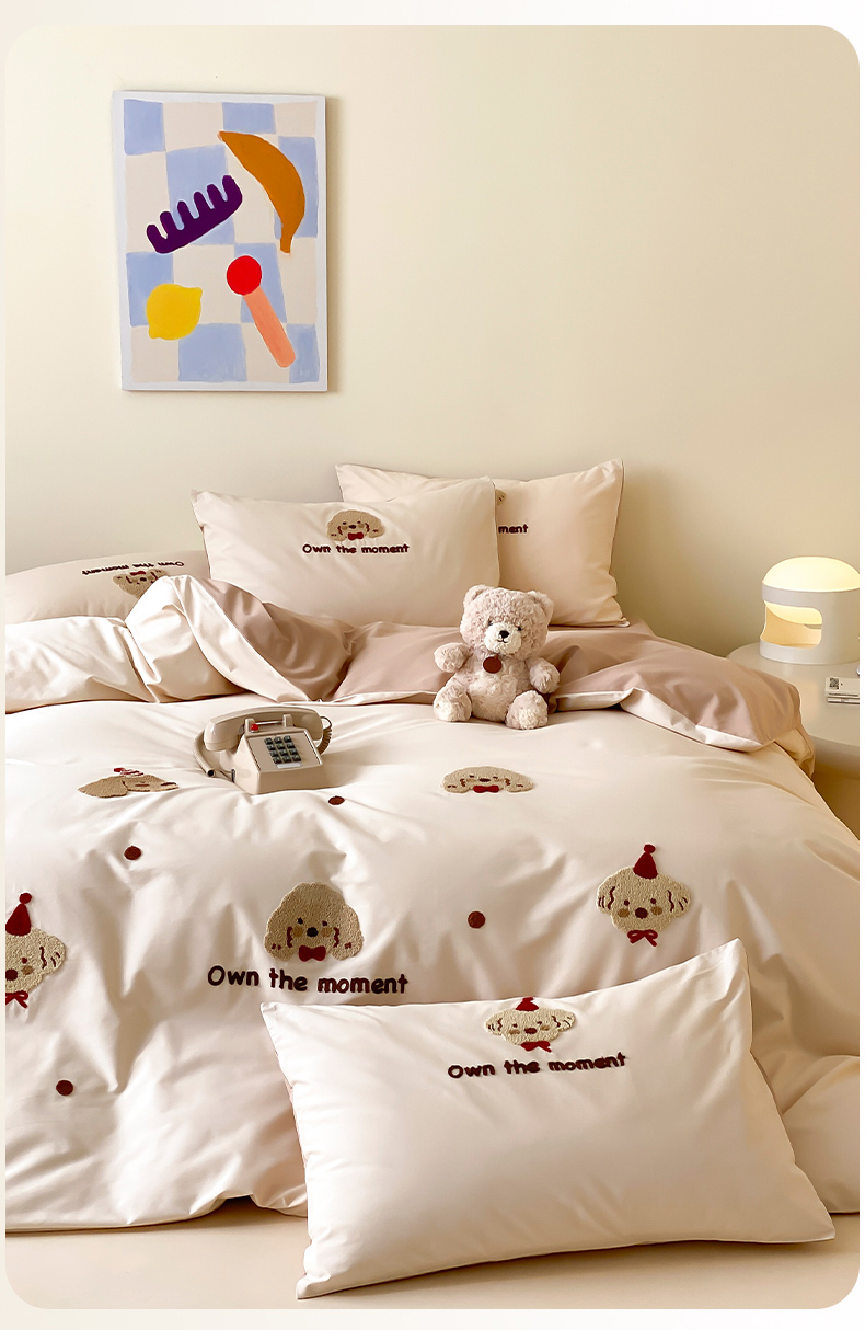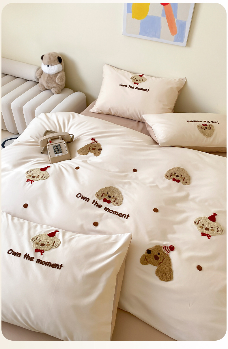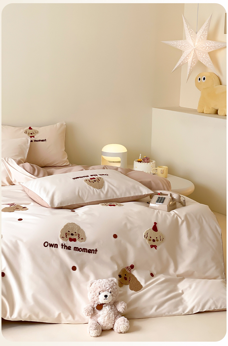 商品名称:云栖2025全棉刺绣纯色纯棉长绒棉四件套-乐萌系列 萌萌狗