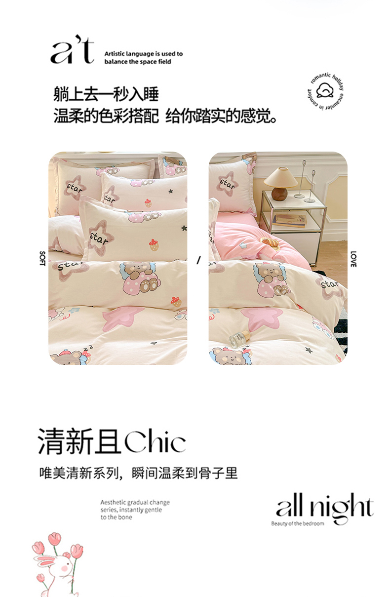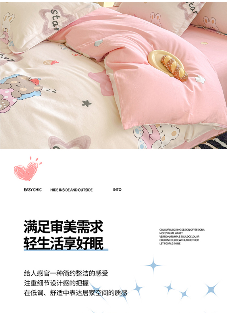 当前位置: 91家纺网 > 商品网购 > 床品套件 > 四件套 > 全棉普通四件套 > 帛织澜 12868全棉喷气印花四件套 星星兔
