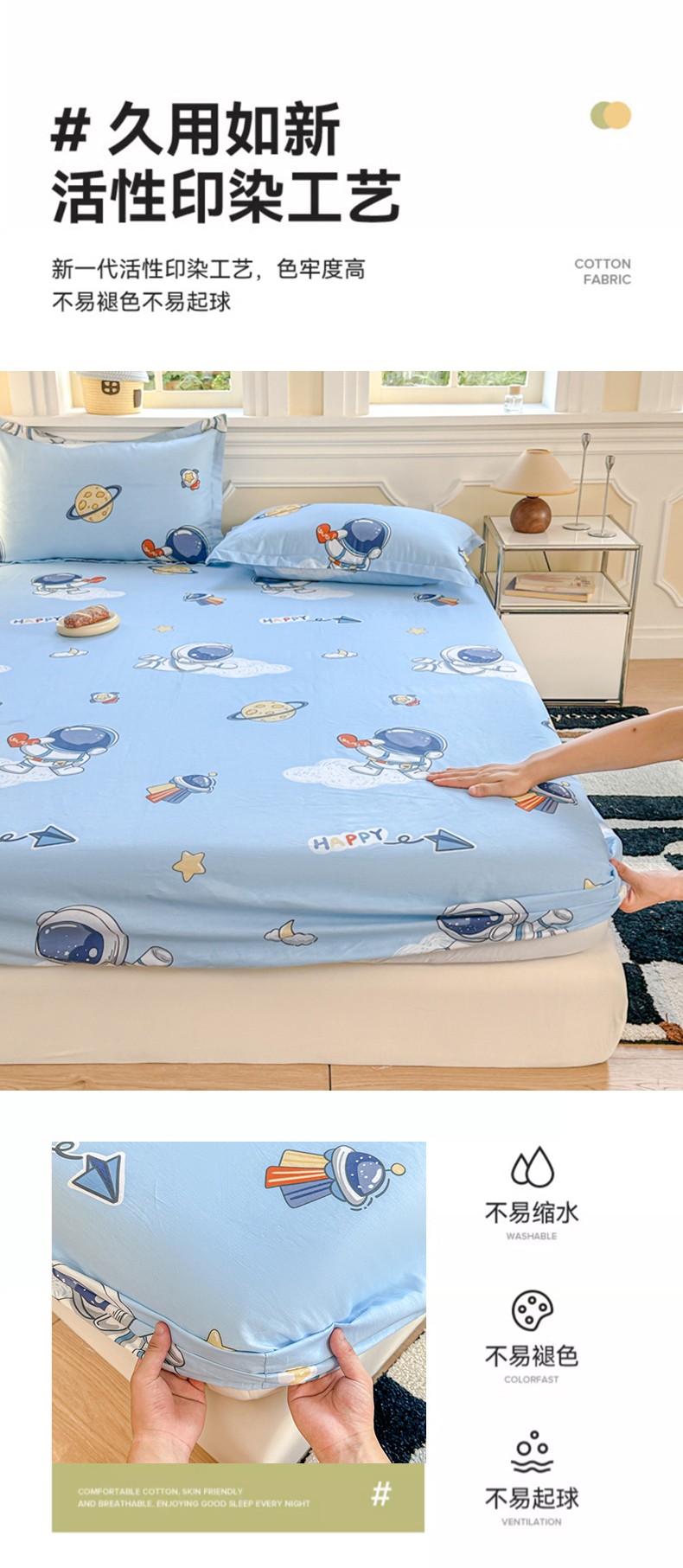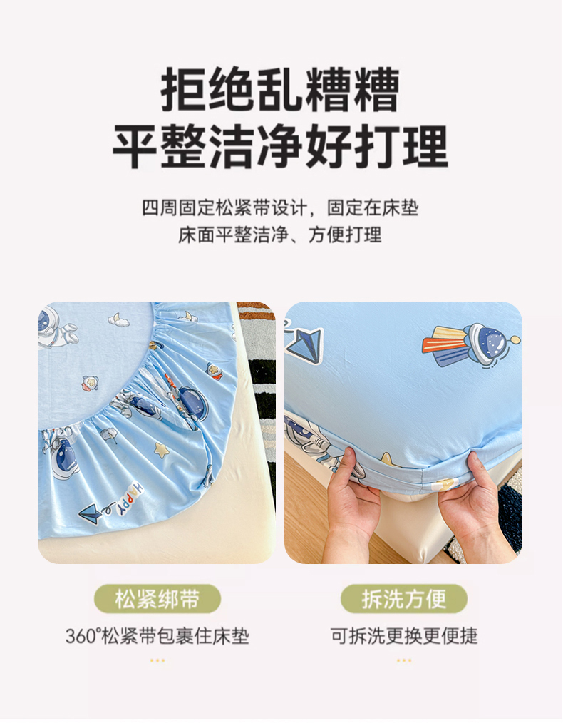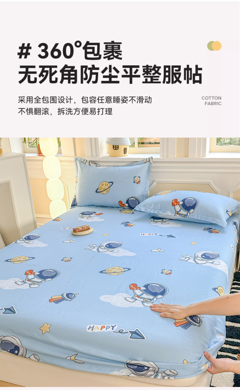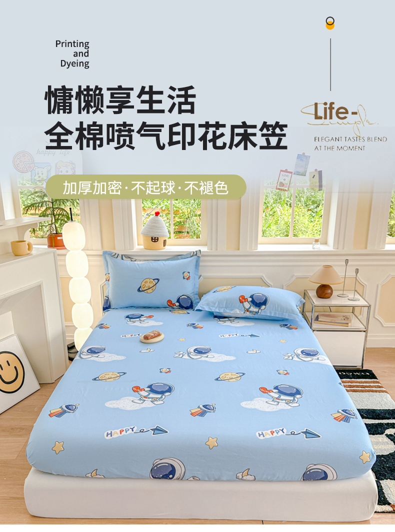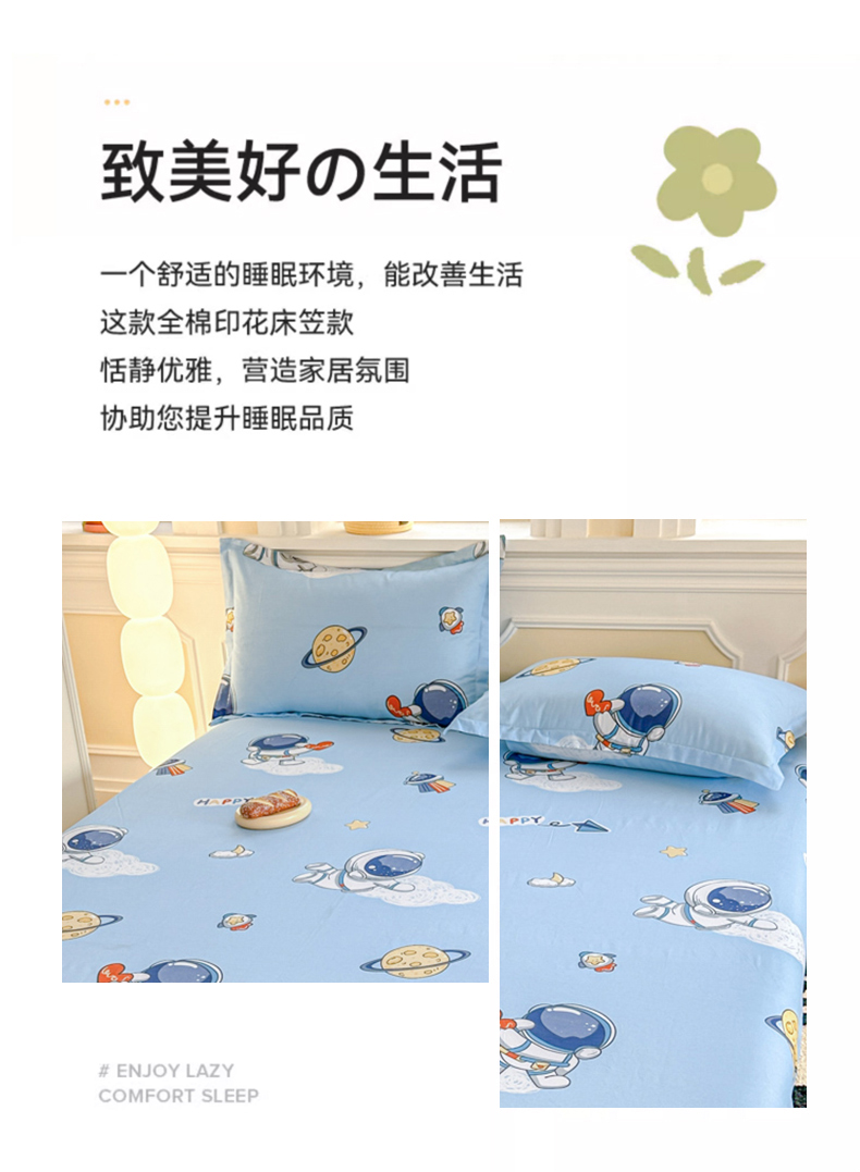 • 91家纺网 家纺一手货源 找家纺 帛织澜家纺 2025新款喷气12868系列纯棉印花单床笠 太空奇遇