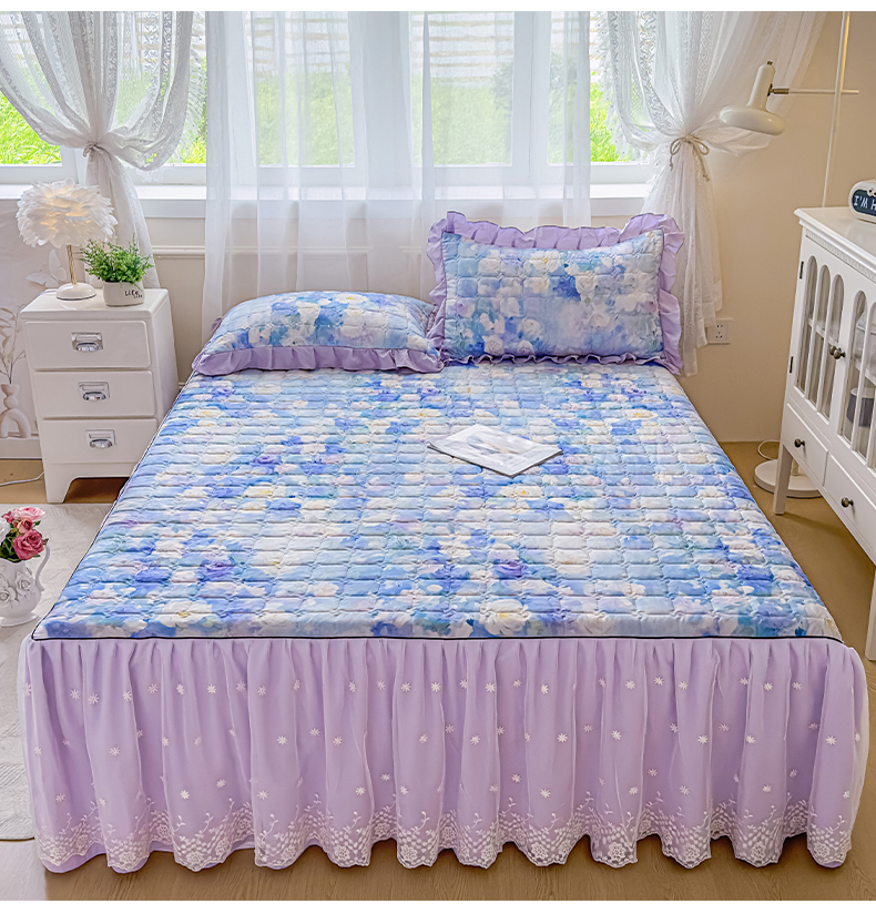 家之硕家纺 2025春夏新款鹿锦棉蕾丝花边夹棉床裙单床裙床裙单件 花香四溢