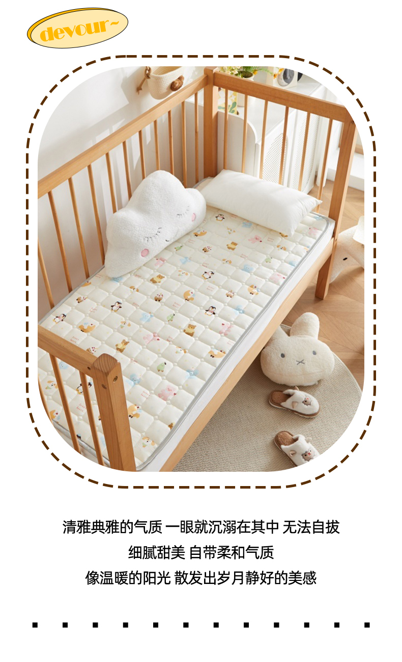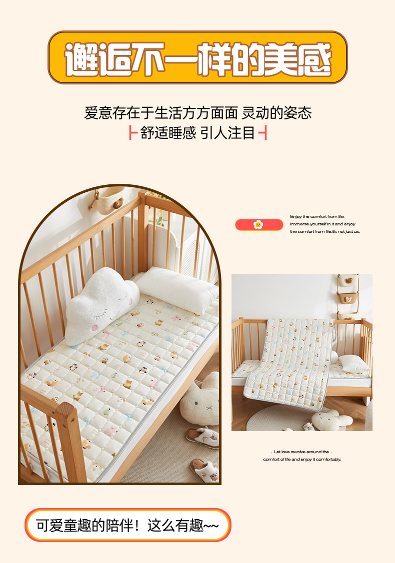 商品名称:奇丝雅 2025新款A类全棉棉花婴儿薄床垫幼儿园床褥子儿童专用小宝宝拼接四季通用午睡垫被午托入学 棉花填充-面包乐园-全棉款