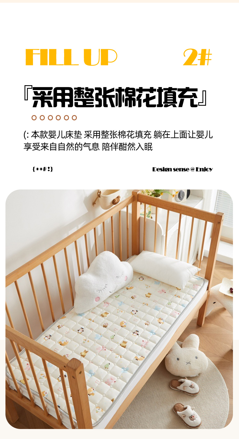 奇丝雅 2025新款A类全棉棉花婴儿薄床垫幼儿园床褥子儿童专用小宝宝拼接四季通用午睡垫被午托入学 棉花填充-面包乐园-全棉款