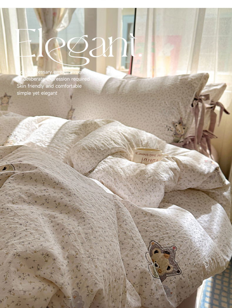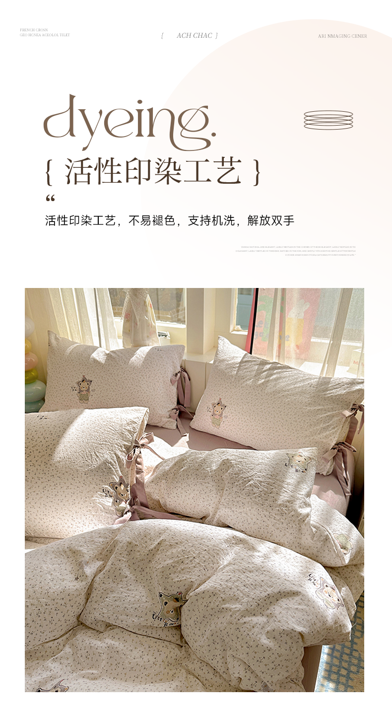 (总)漫仙阁家纺 2025新品云朵棉可爱风卡通烫画单床笠枕套三件套,小浣熊,邻家女孩,小青蛙,兔小姐,花仙子,狗狗家族