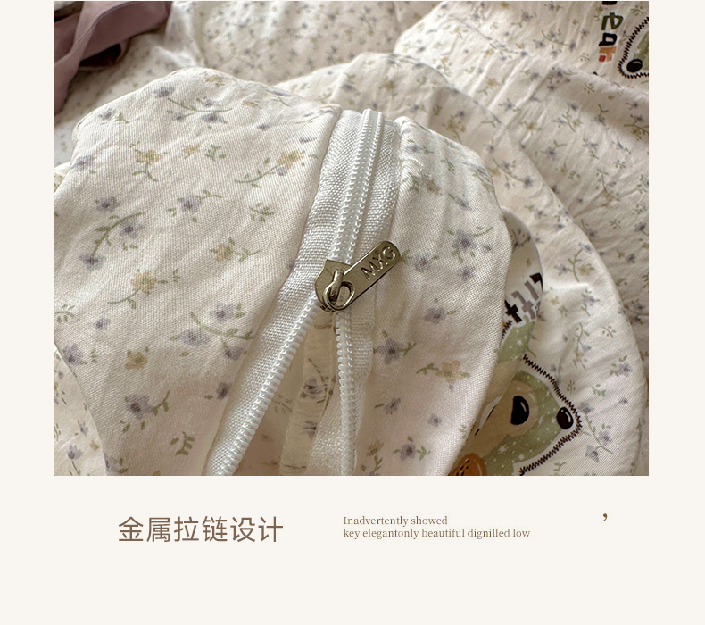 商品名称:漫仙阁家纺 2025新款蝴蝶结绑带款四件套-卡通系列 紫色小熊