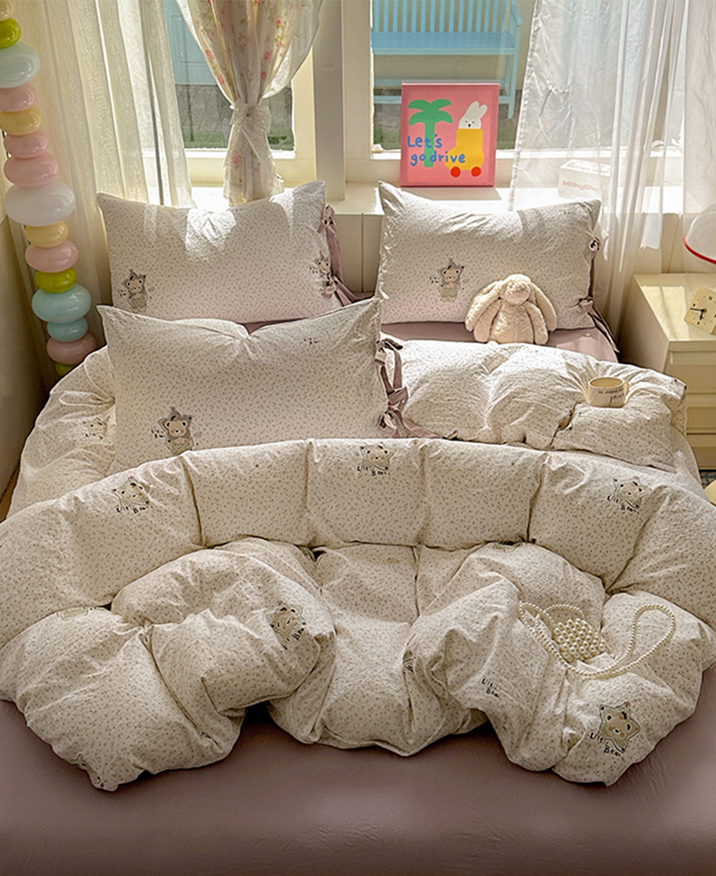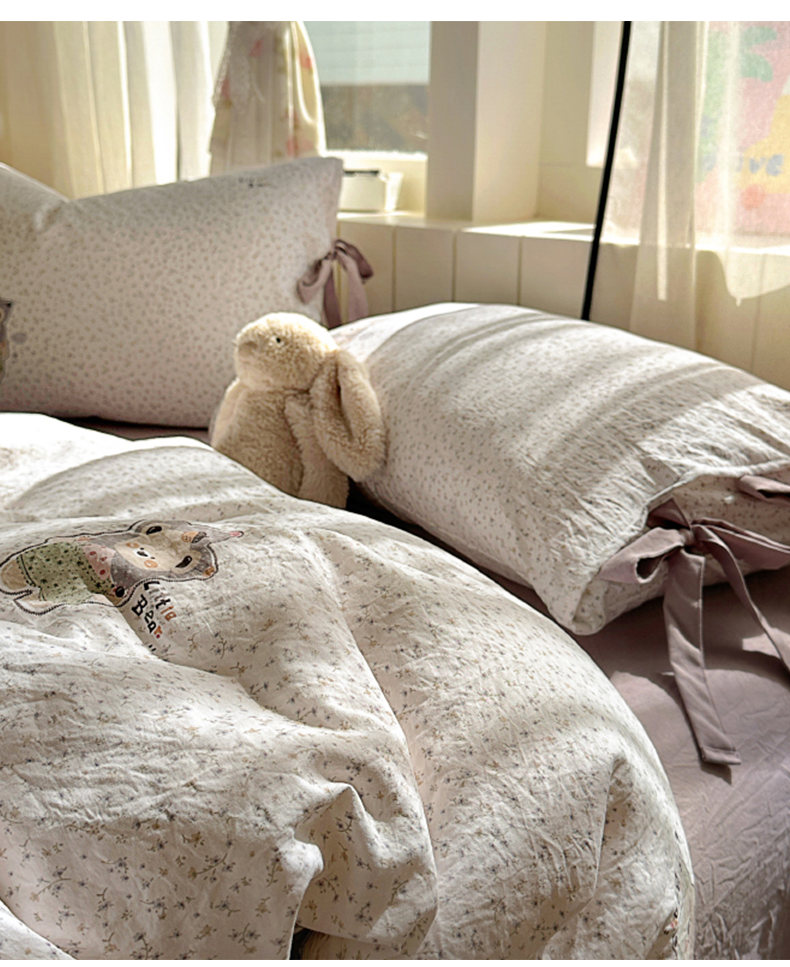 漫仙阁家纺 2025新款蝴蝶结绑带款四件套-卡通系列 紫色小熊