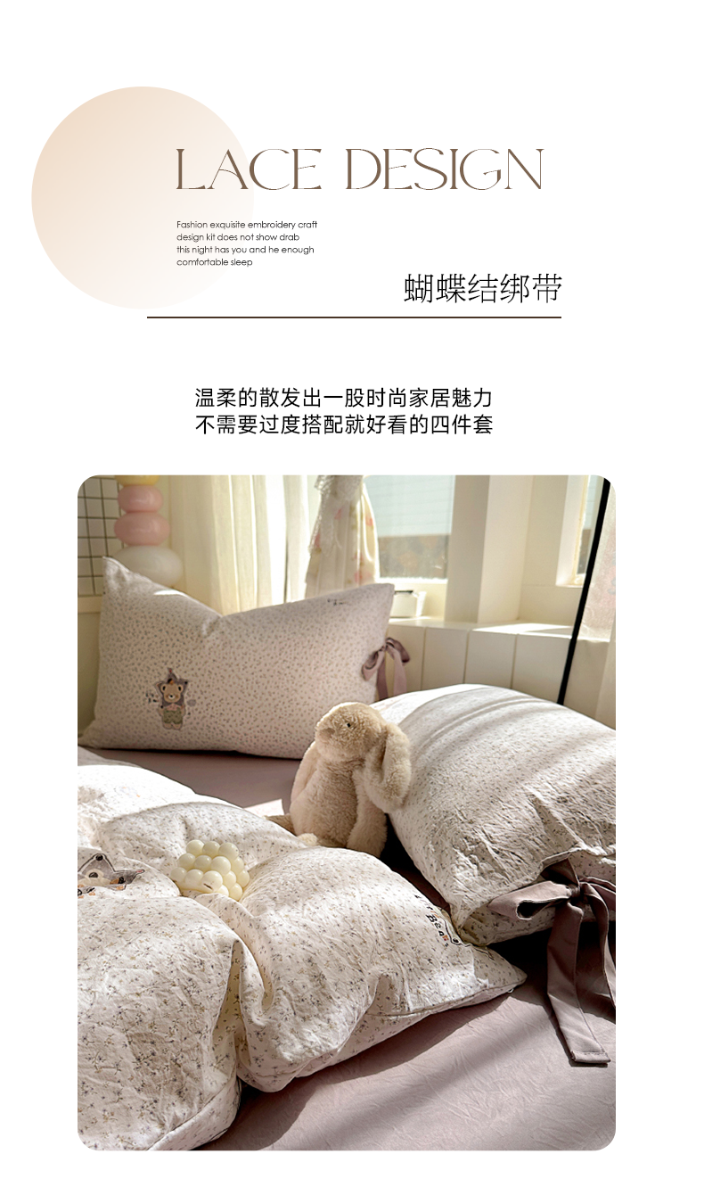 (总)漫仙阁家纺 2025新款蝴蝶结绑带款四件套-卡通系列,格子小狗,春日序曲,粉小兔,萌宠小狮子,裙子小兔,绅士小象-蓝,绅士小象-米黄,田园女孩,紫色小熊,欢乐小象
