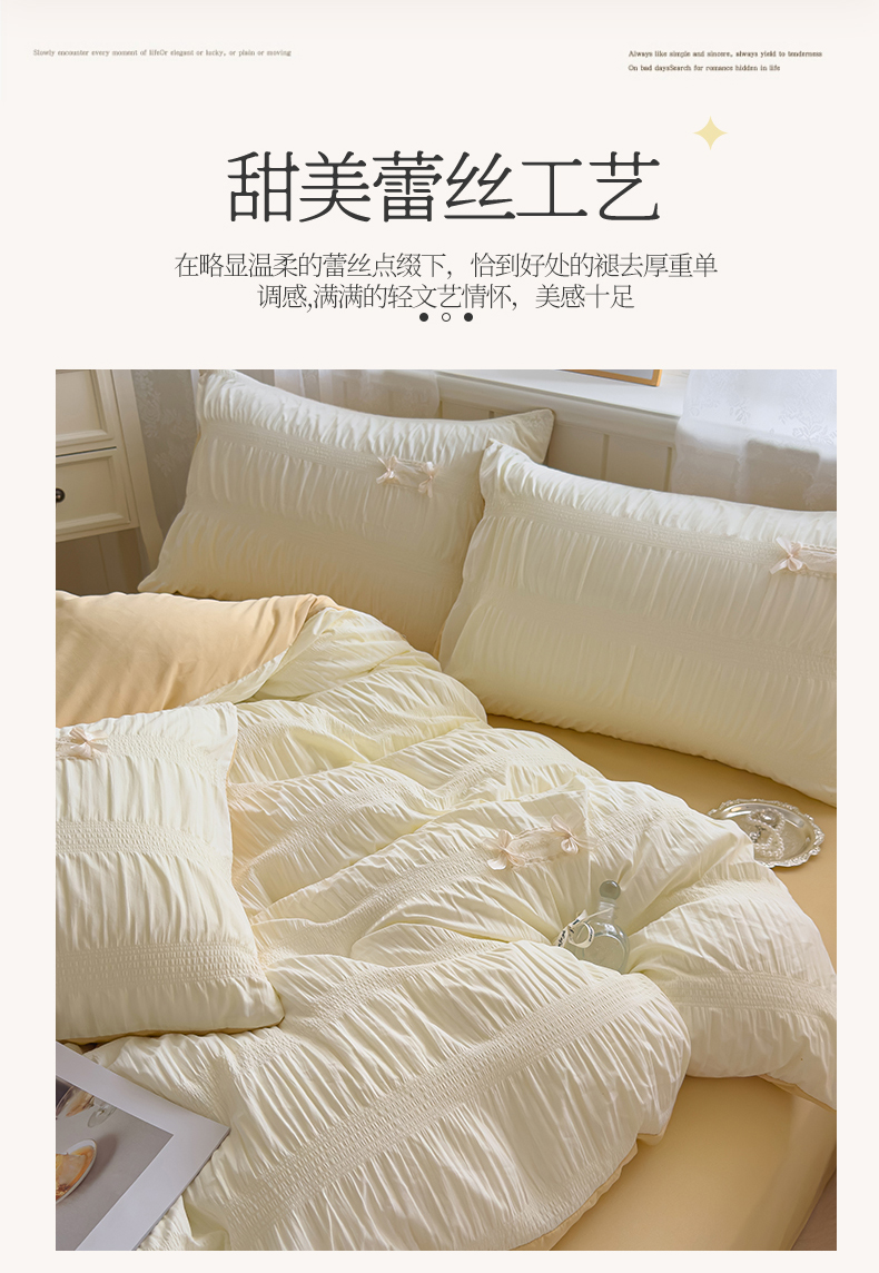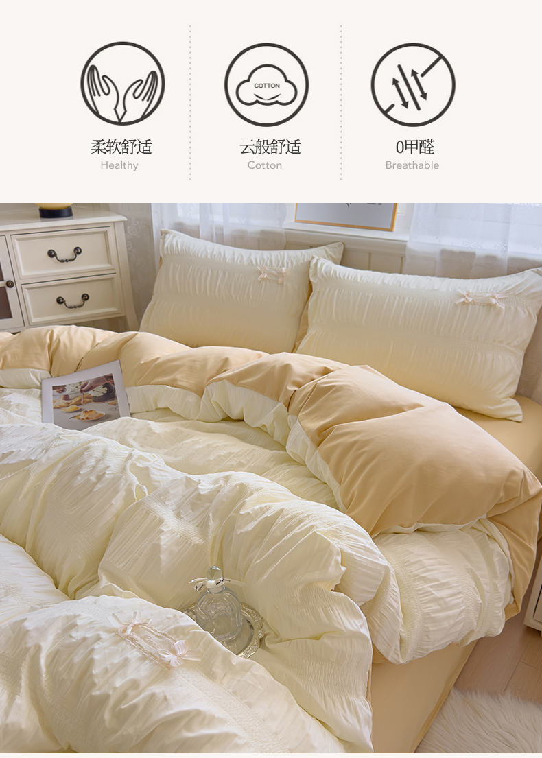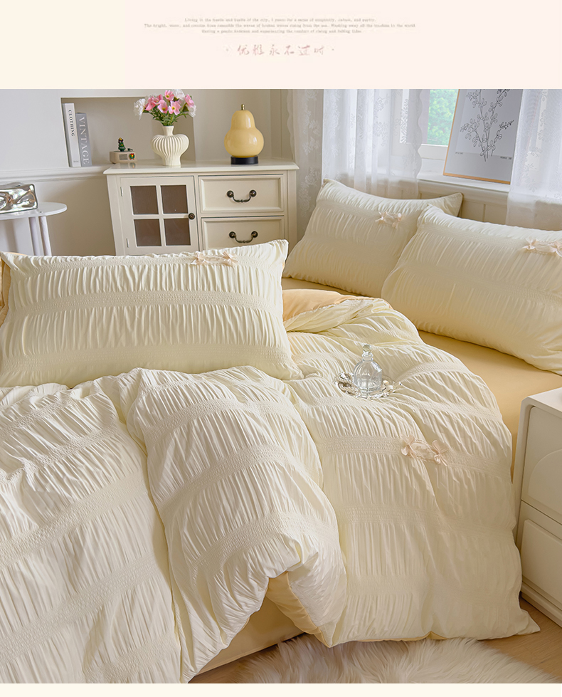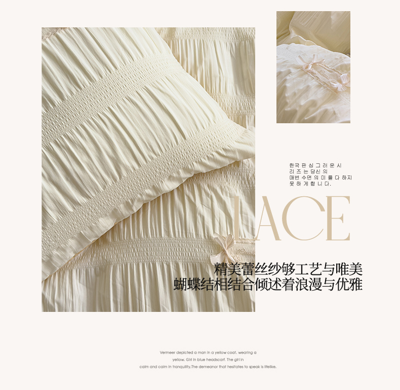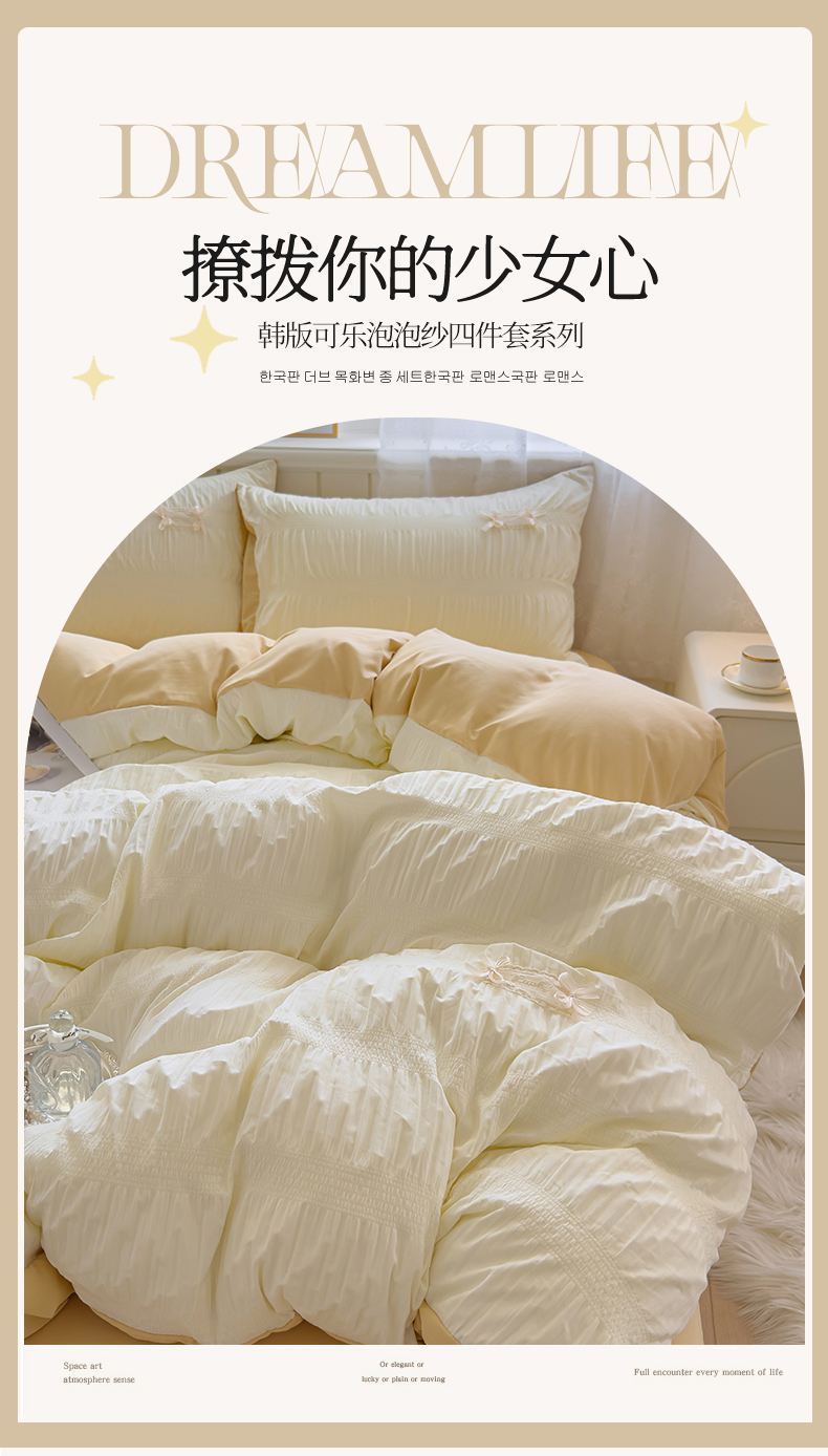 当前位置: 91家纺网 > 商品网购 > 床品套件 > 四件套 > 其它四件套 > 梦庭帛美 2025新款韩版公主风可乐泡泡纱四件套 抹茶绿