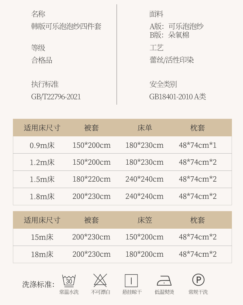 【床笠款】1.8四件套-被套200x230 | ¥74.00 |