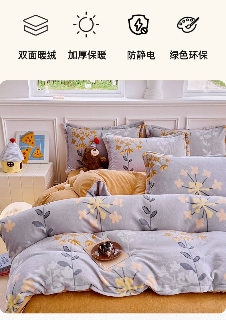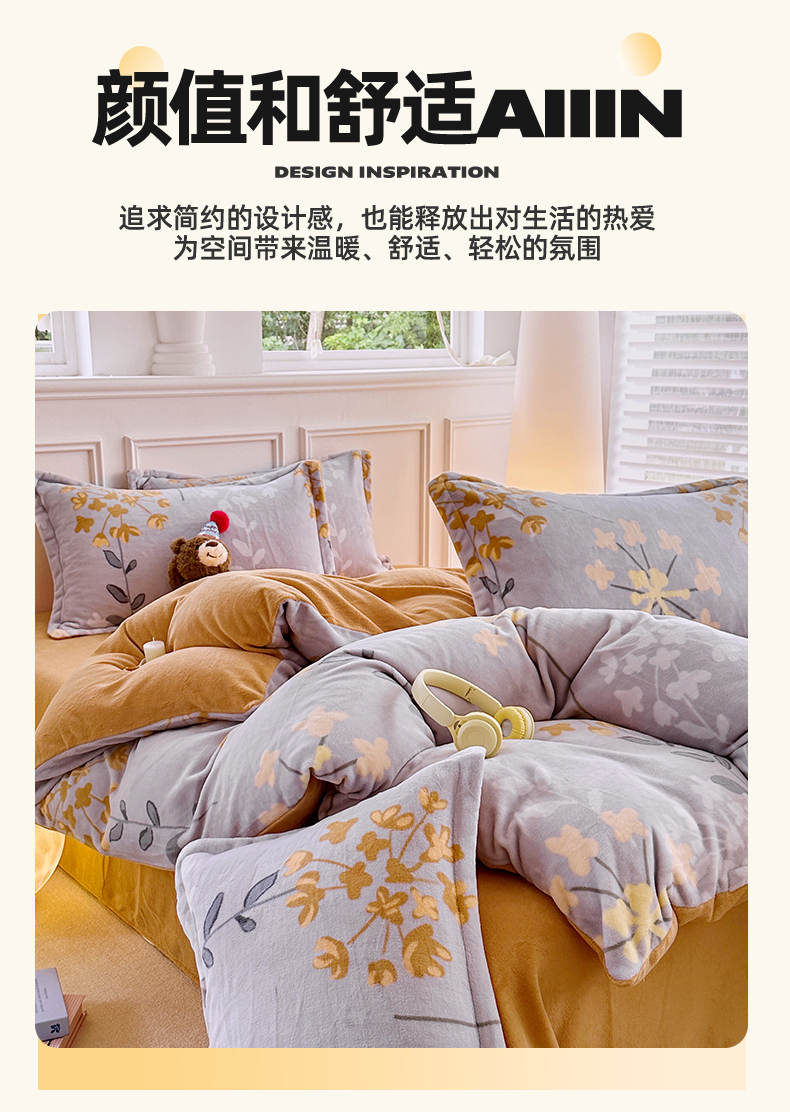 当前位置: 91家纺网 > 商品网购 > 床品套件 > 四件套 > 牛奶绒四件套 > 家贝爱 2025新款A类牛奶绒印花四件套 长相思