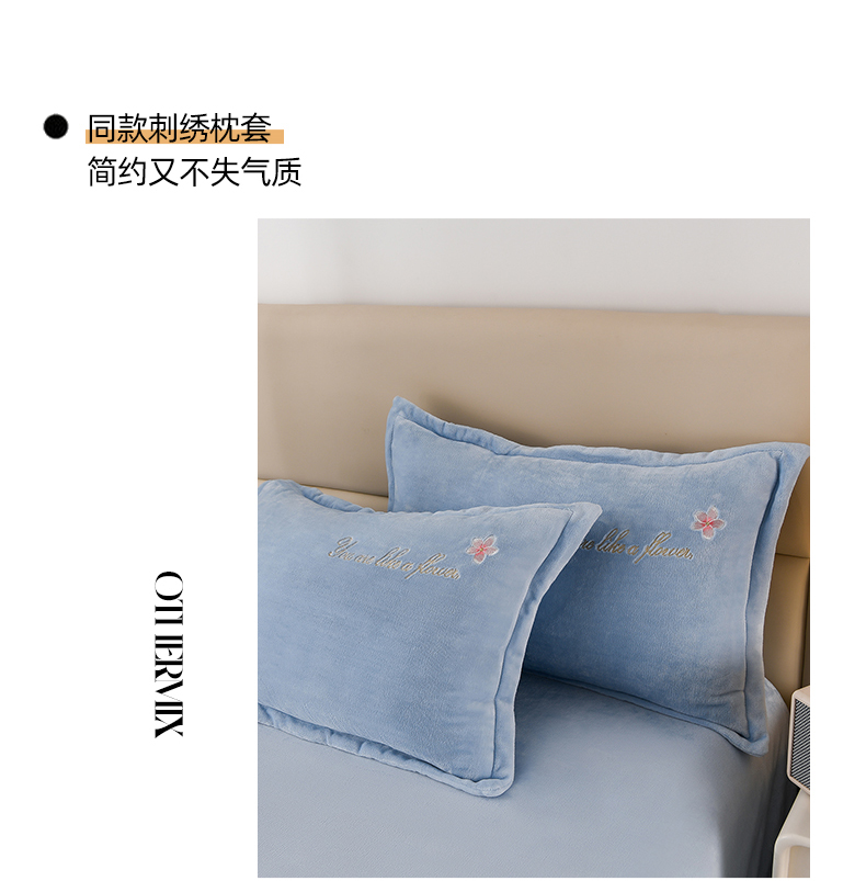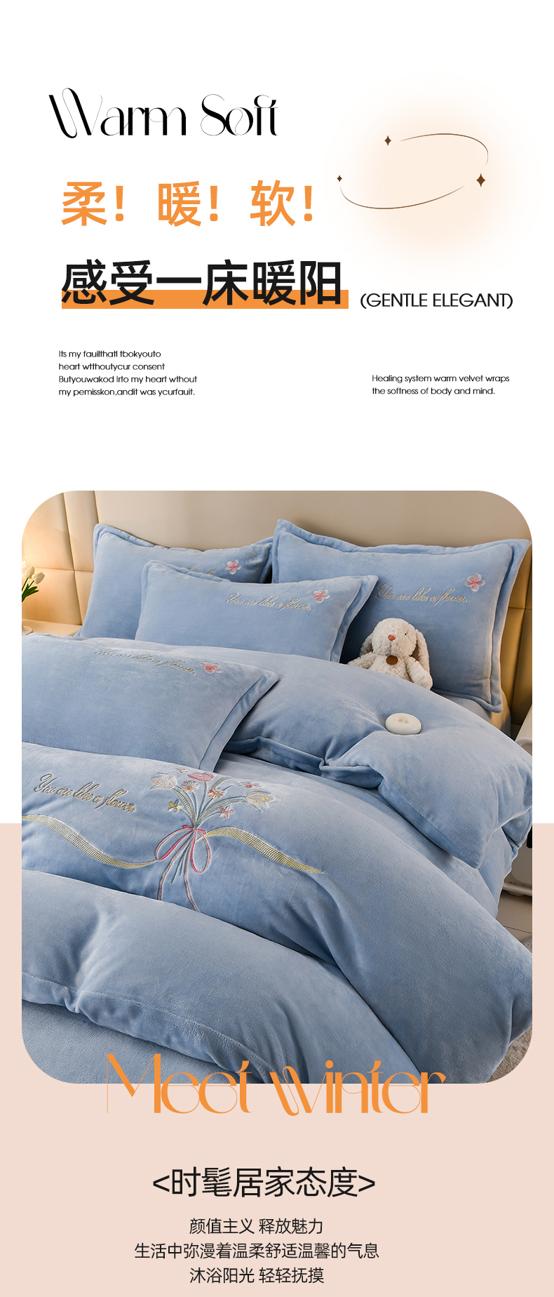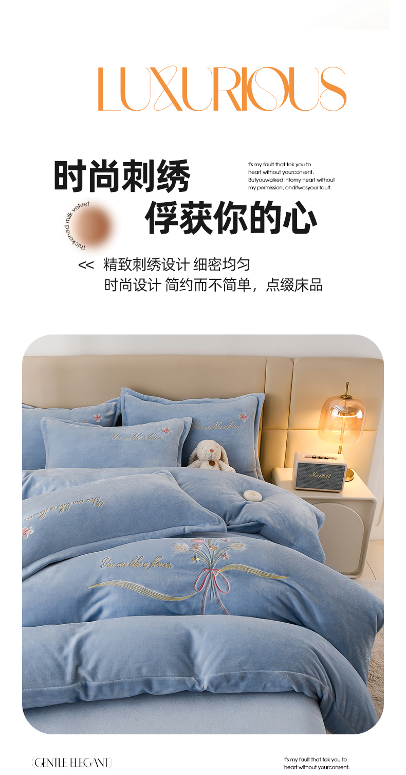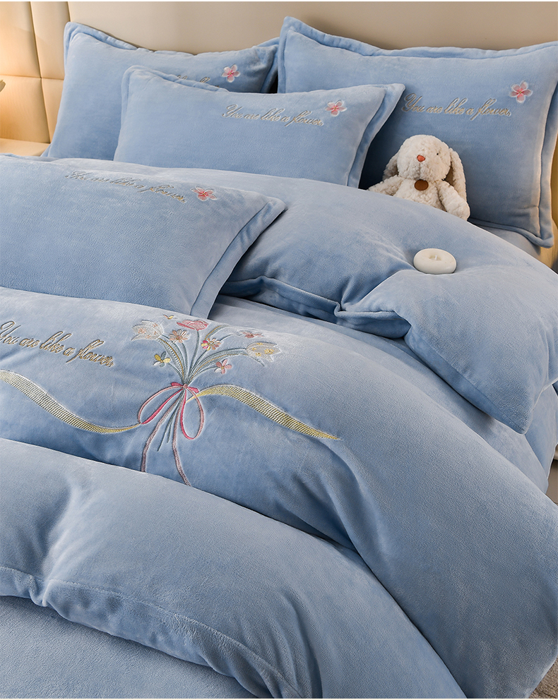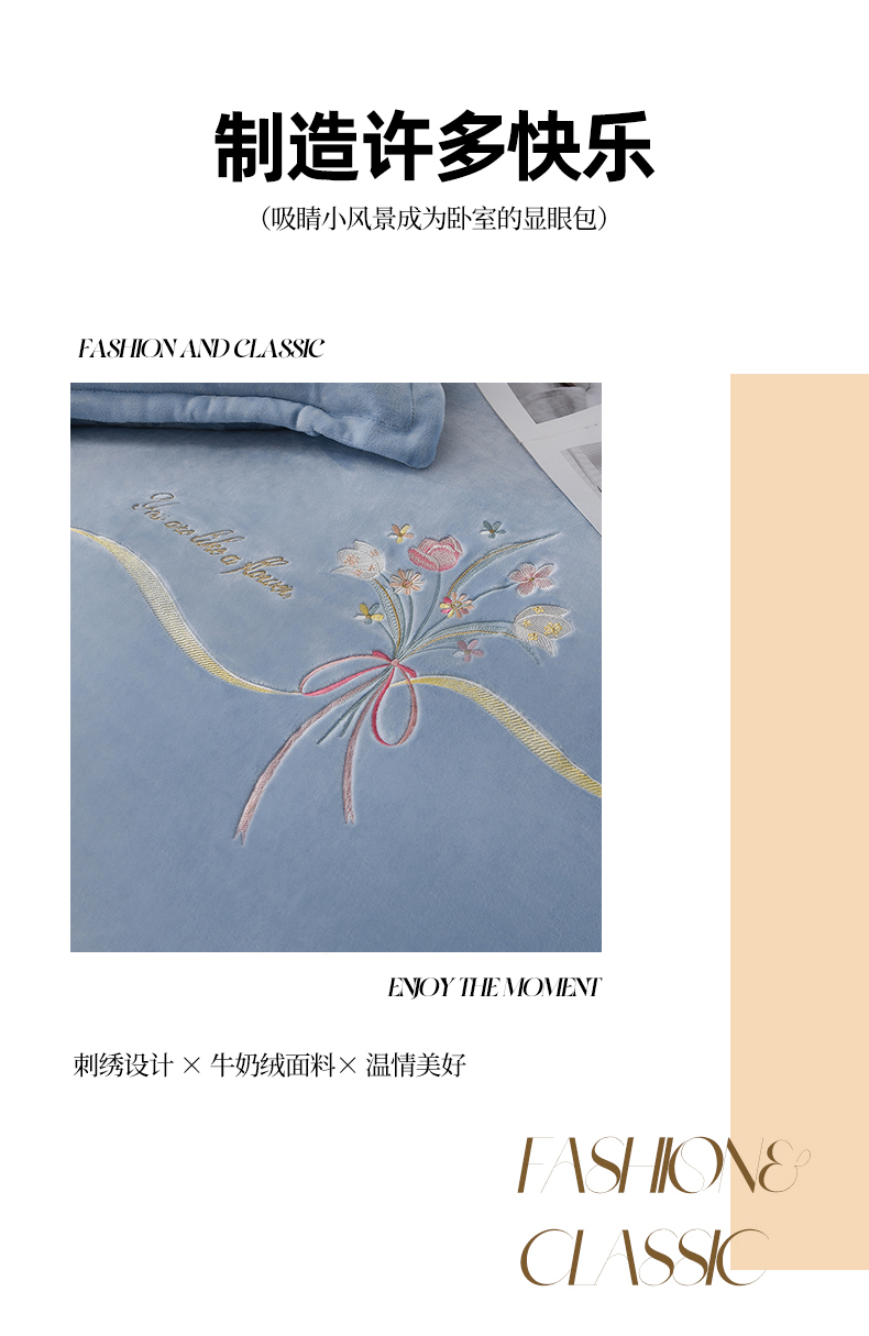 绣女坊 2025新款高克重牛奶绒刺绣四件套 郁金香-天蓝